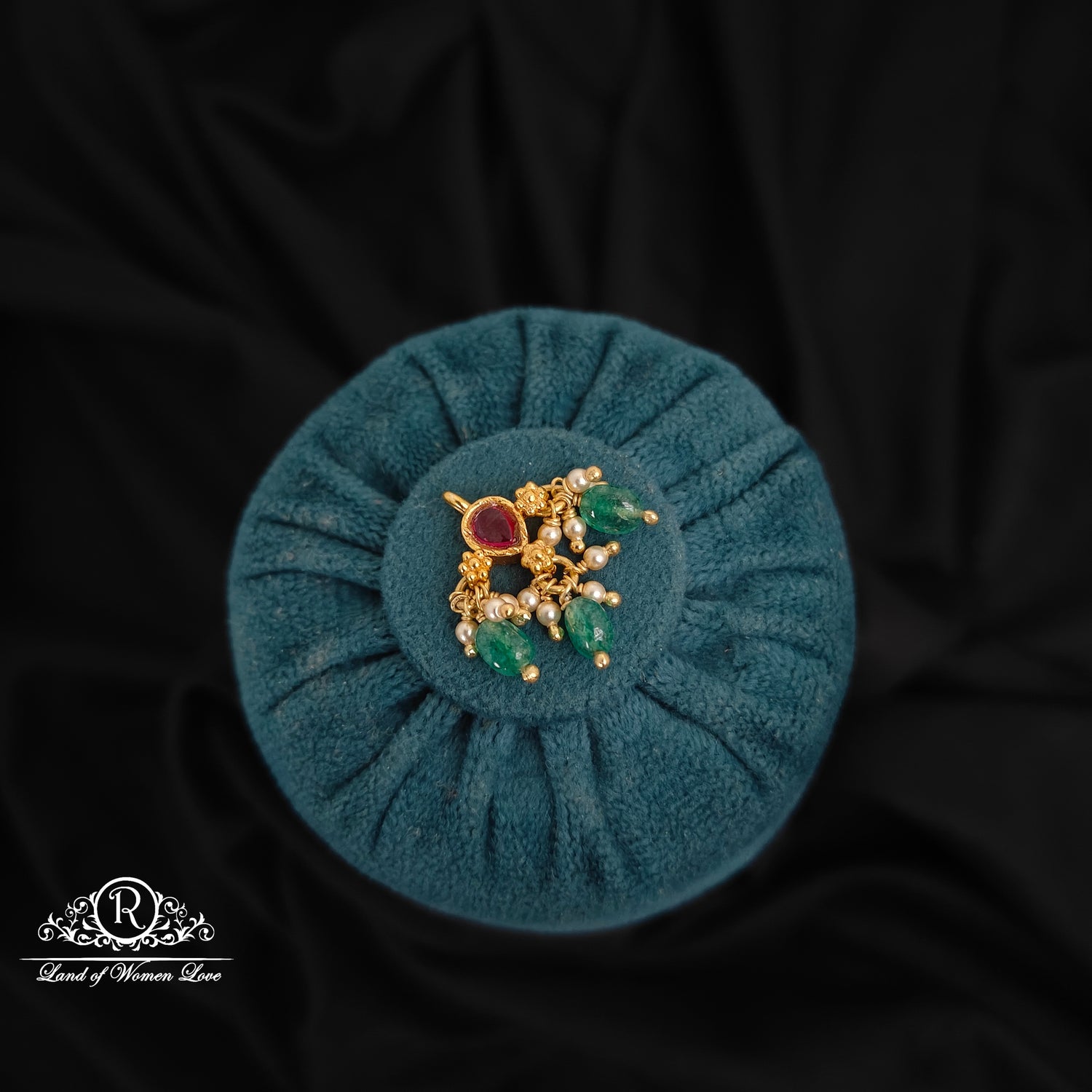 92.5 silver victorian pendent with green beads mala-RCH1036
