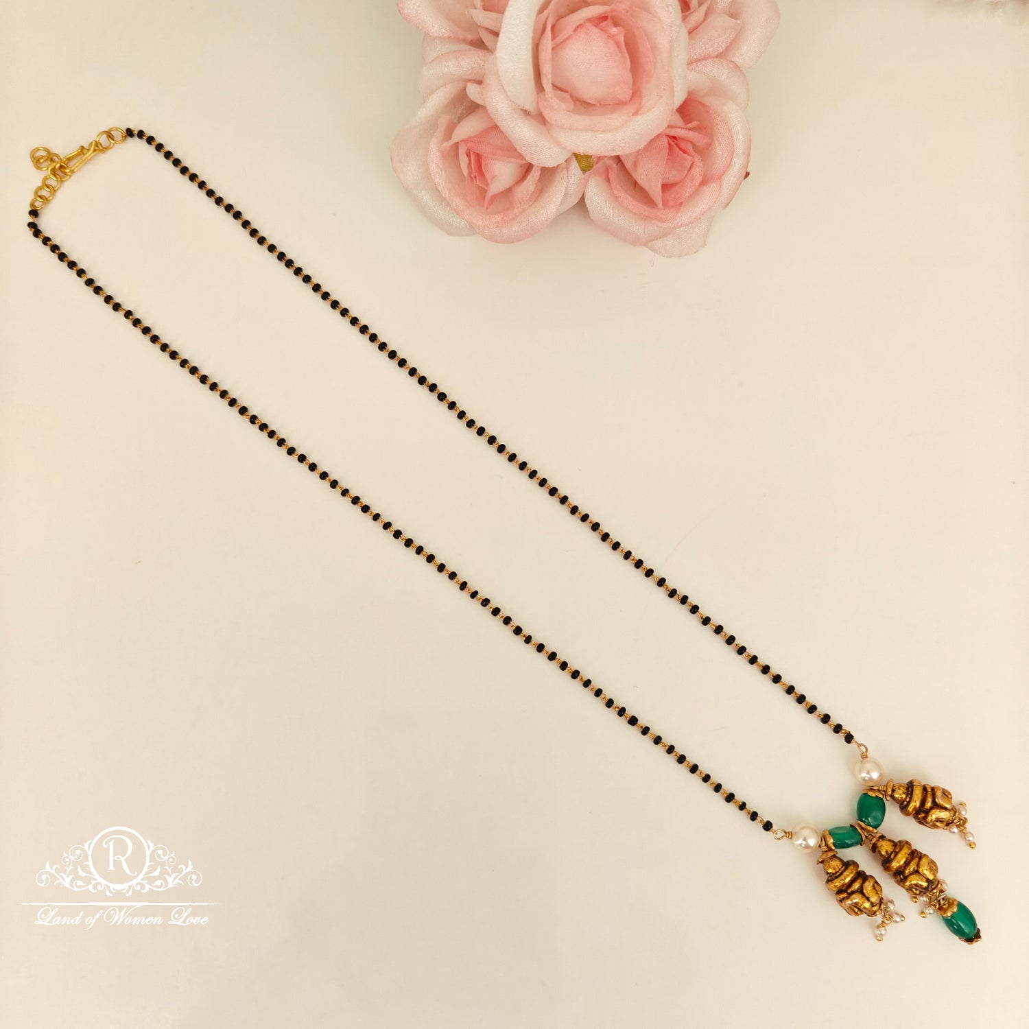 92.5 silver green beads mala with victorian side lockets-RCH1109