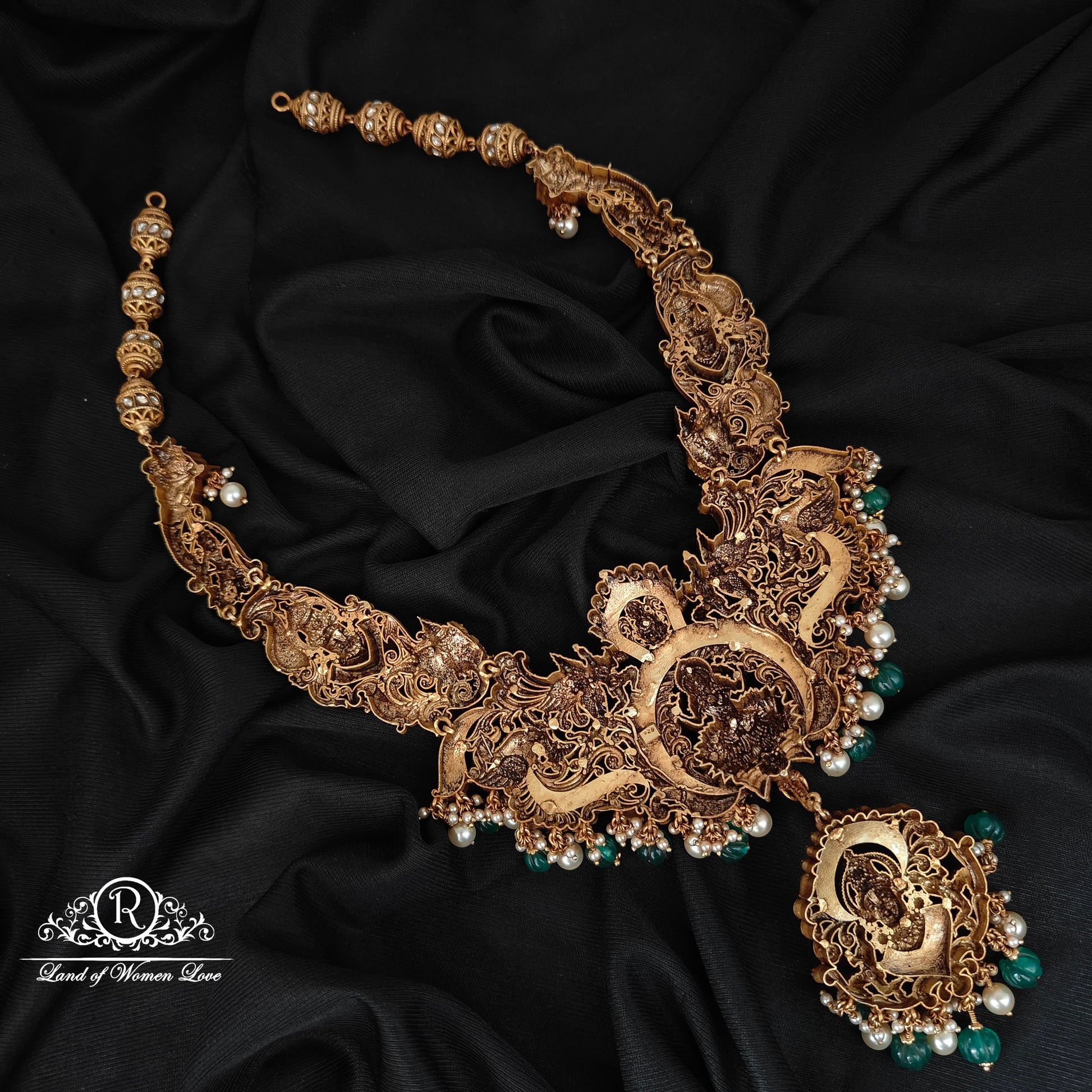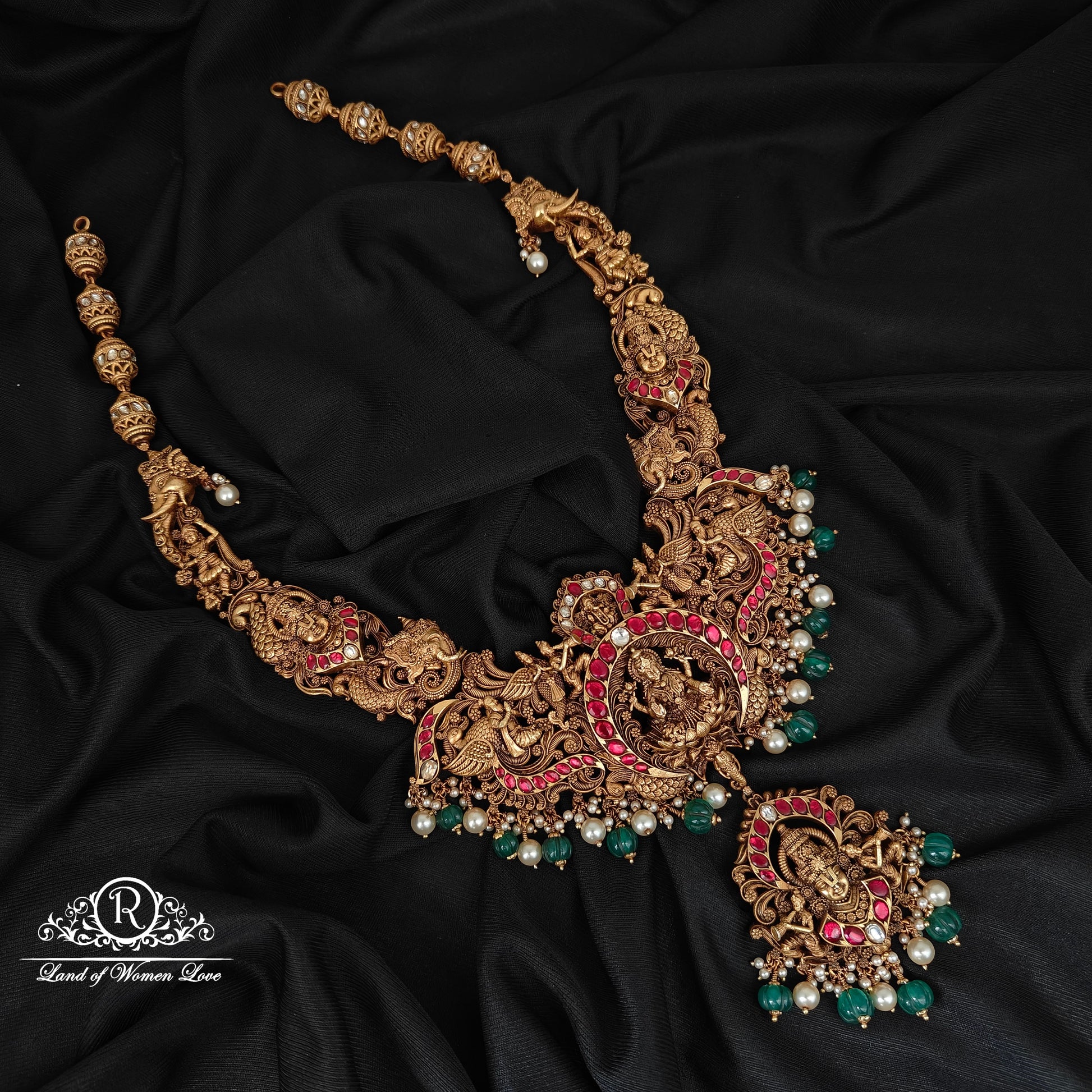 92.5 silver with gold polish 3D 3d desgin work beautiful collection lakshmi devi kundan haram 24 inches length desgin by RamalaCollections