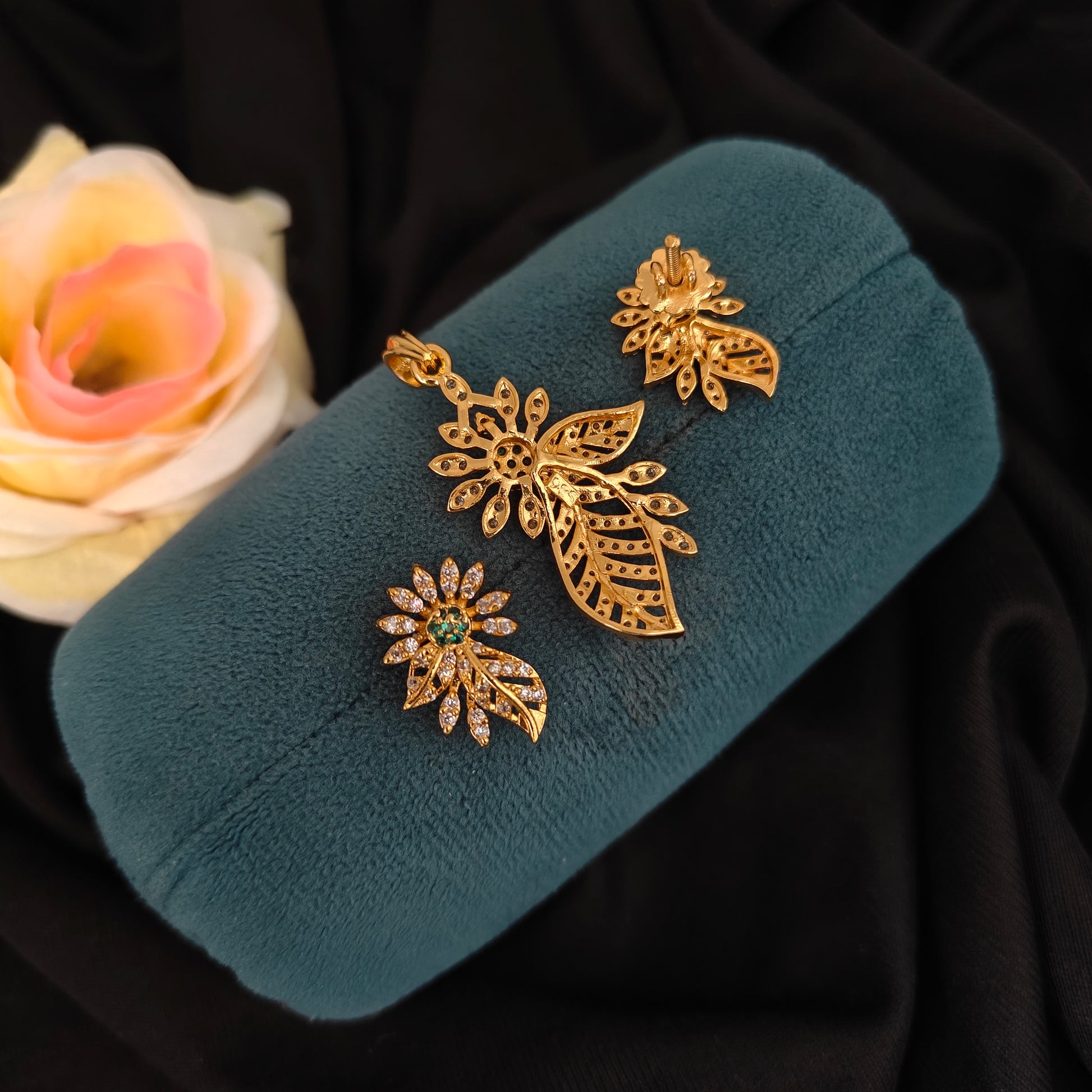 92.5 Silver with gold polish cz stone earrings with locket set elegant desgin 0.7 inches earrings 1.7 inches length locket desgin by ramalacollections