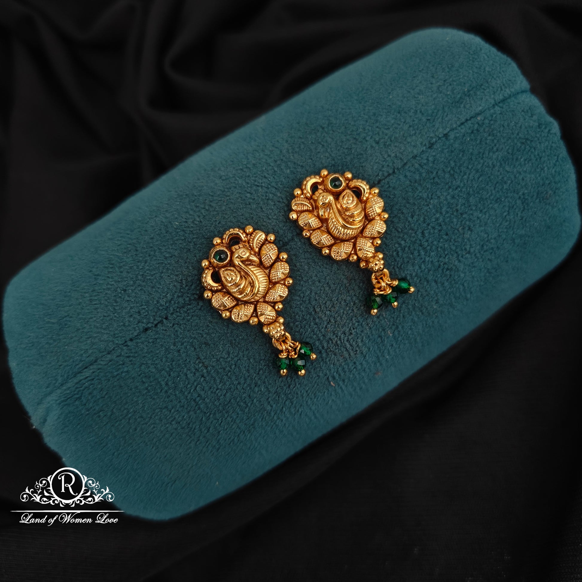 92.5 silver with gold polish beautiful peacock desgin earrings south screw pattern 1 inches length desgin by RamalaCollections