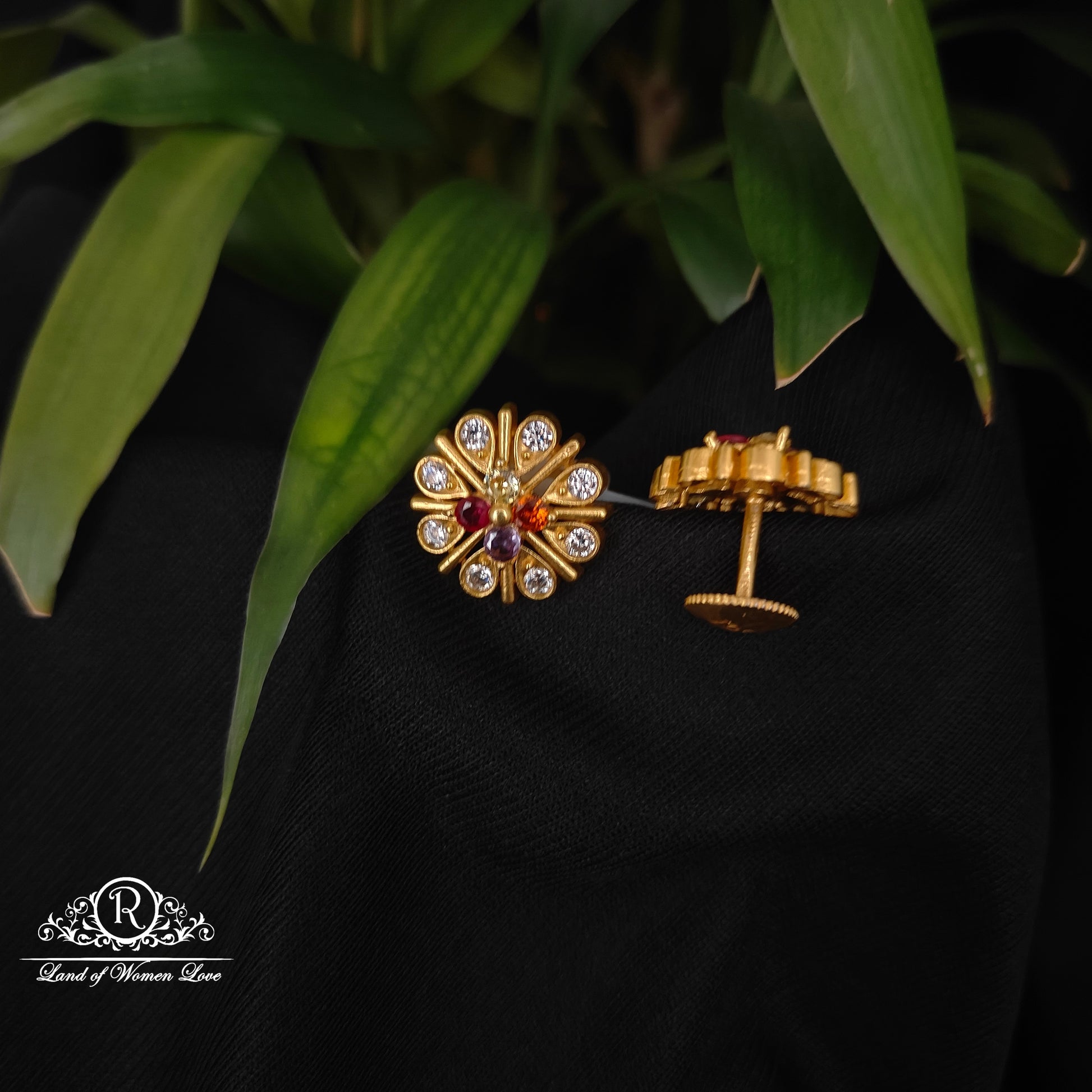 92.5 Silver base gold polish light weight white with multi colour stone earrings studs model with south screw pattern 0.8 inches length desgin by ramala collections