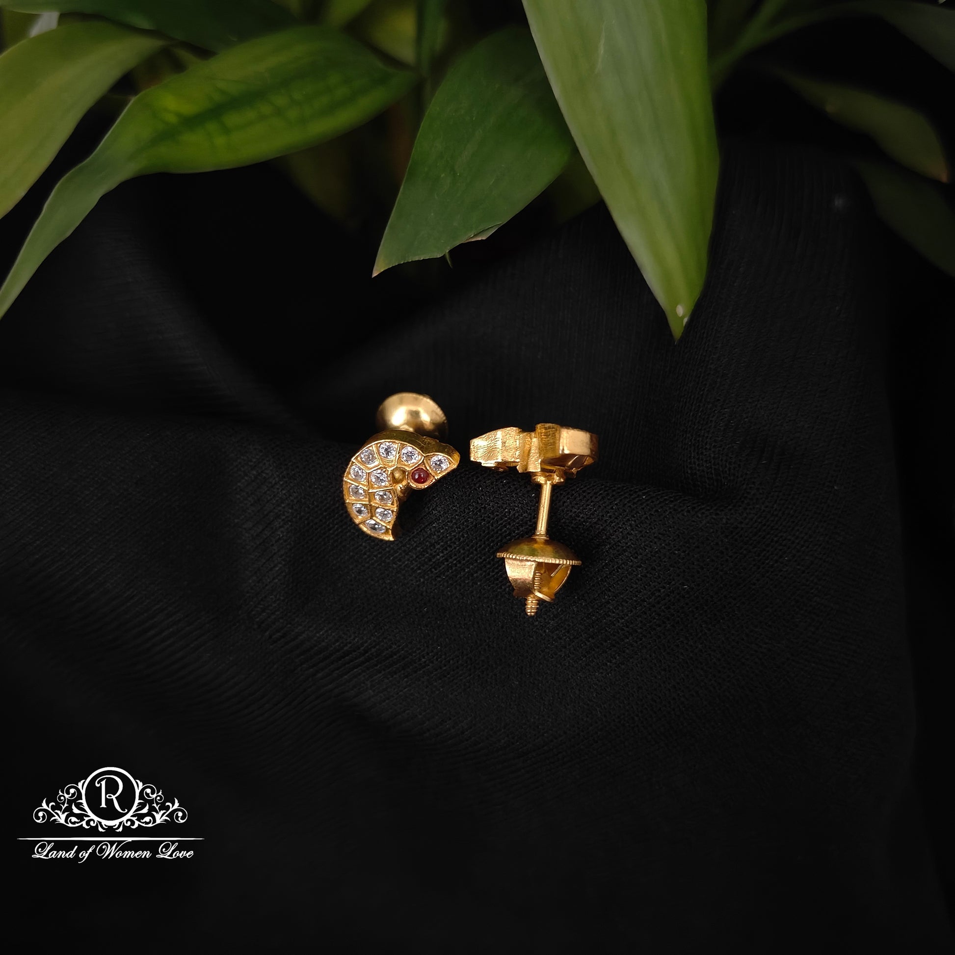 92.5 Silver base gold polish light weight cz stone earrings studs model with bombay screw pattern 0.2 inches length desgin by ramala collections