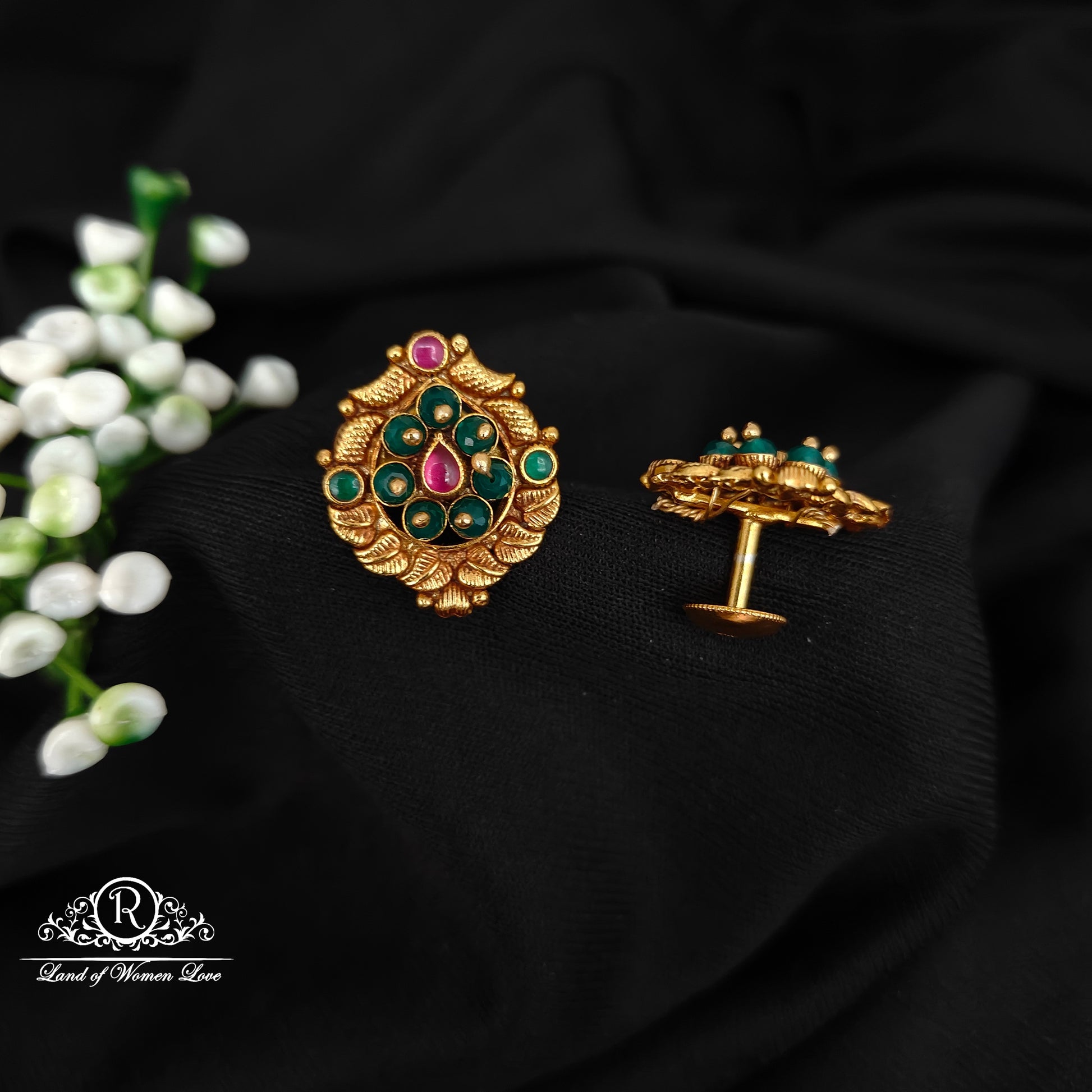 92.5 SILVER GREEN BEADS ROUND STUDS-RCJR1089