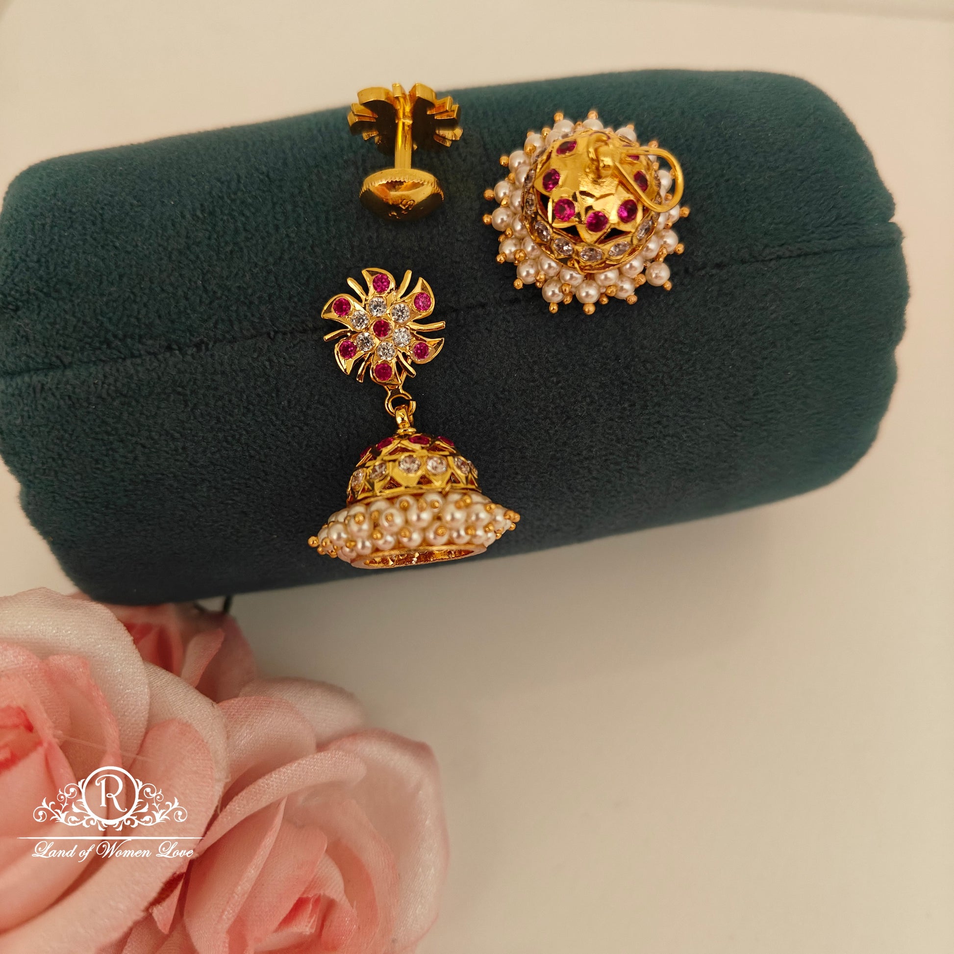 92.5 silver with gold polish vintage collection hand made jumkas changeable jumkas desgin 1.3 inches length desgin by ramalacollections