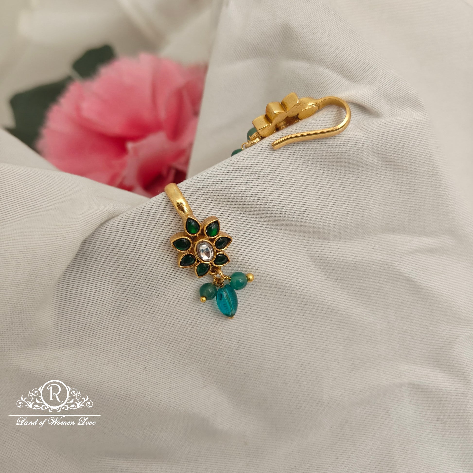 92.5 Silver with gold polish kundhan bugadi weight 1 inche length desgin by ramala collections