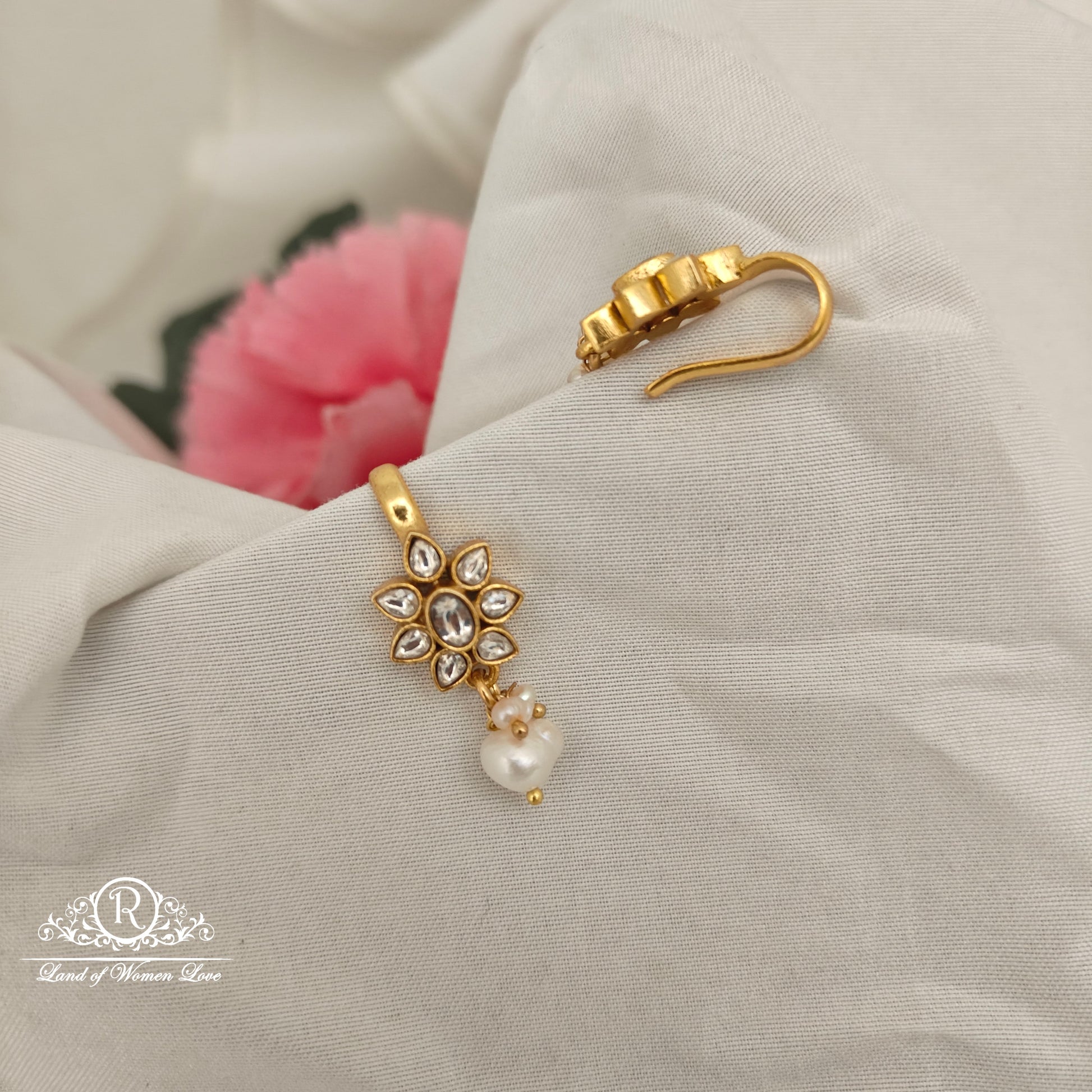 92.5 Silver with gold polish kundhan bugadi weight 1 inche length desgin by ramala collections
