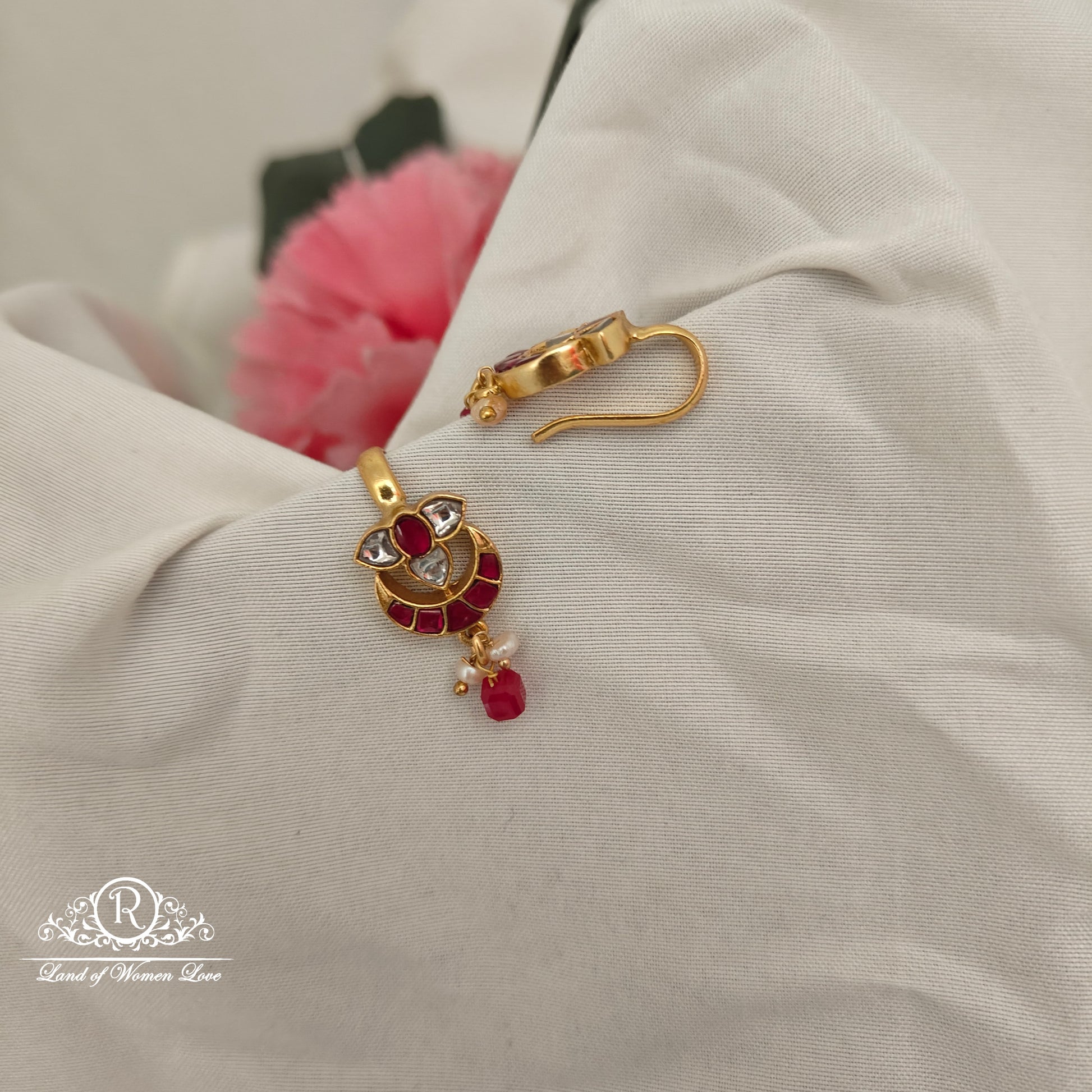 92.5 Silver with gold polish kundhan bugadi weight 0.5 inche length desgin by ramala collections