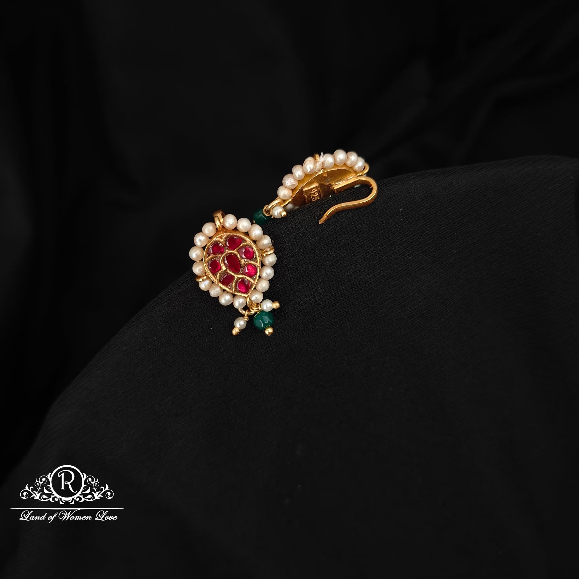 92.5 Silver with gold polish light weight kundan earrings with pearls with bombay screw model 0.5 inches length desgin by ramalacollections "