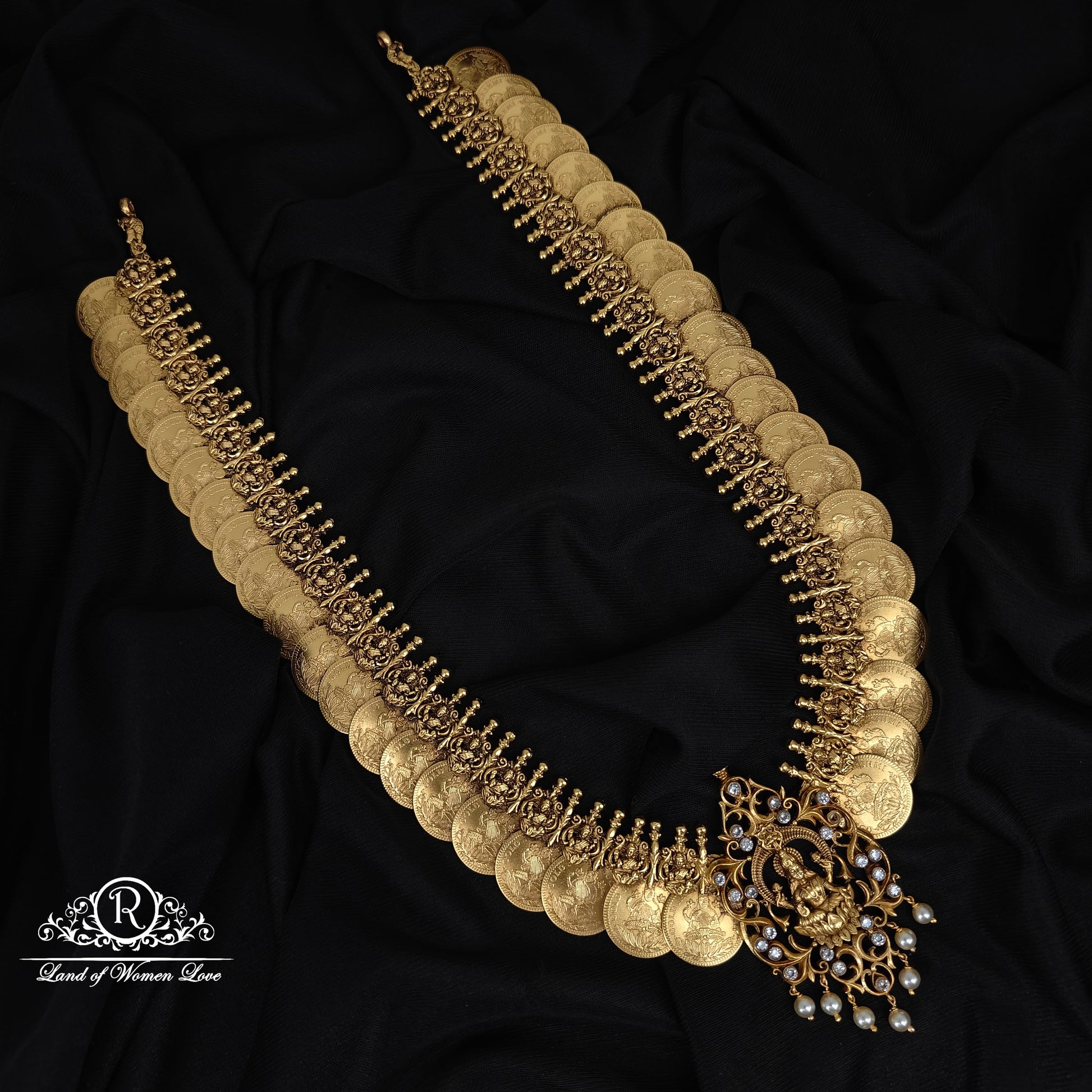 92.5 silver with gold polish lakshmi devi kasu desgin premimum nakshi desgin beautiful haram 22 inches length desgin by RamalaCollections