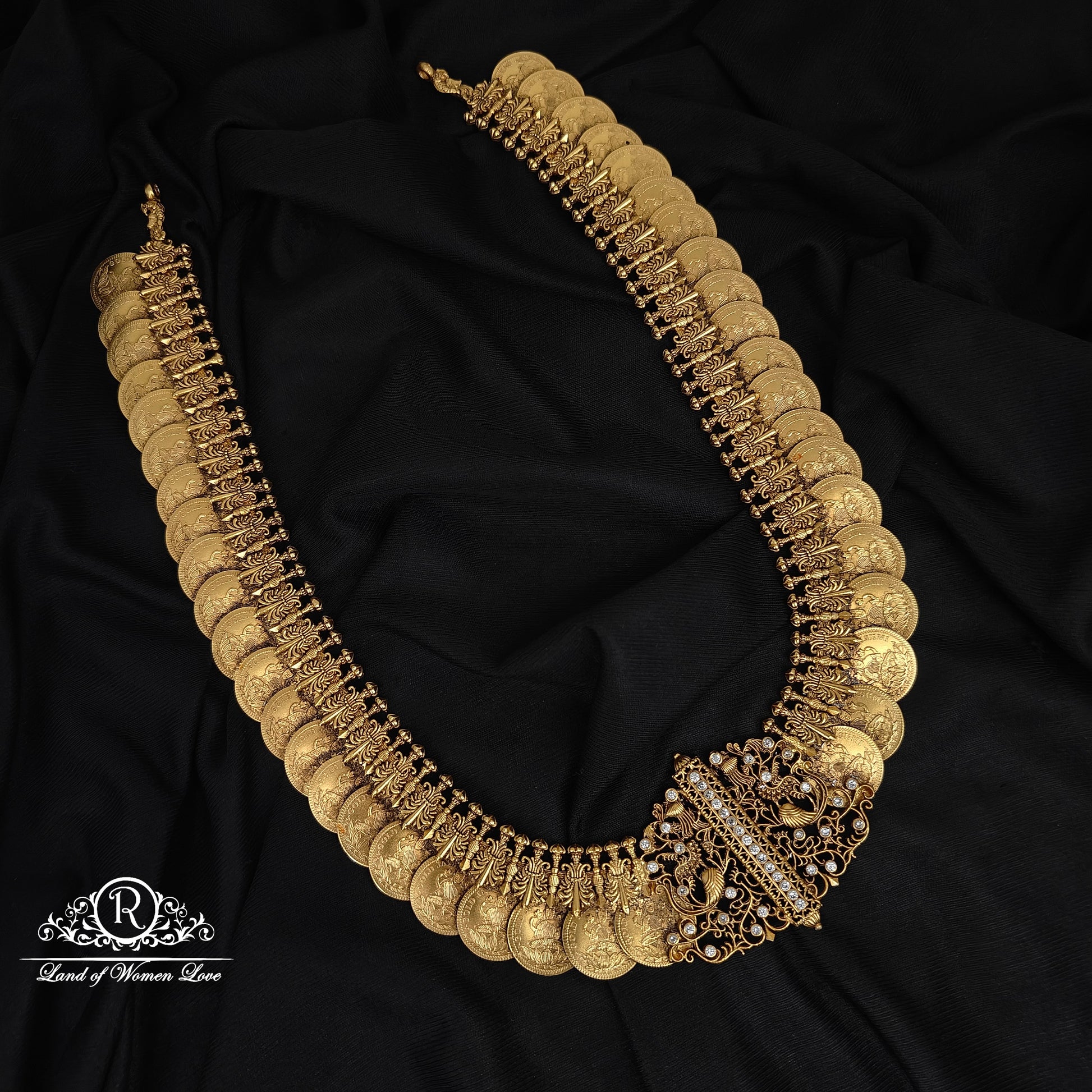 92.5 silver with gold polish lakshmi devi kasu desgin premimum nakshi desgin beautiful haram 22 inches length desgin by RamalaCollections