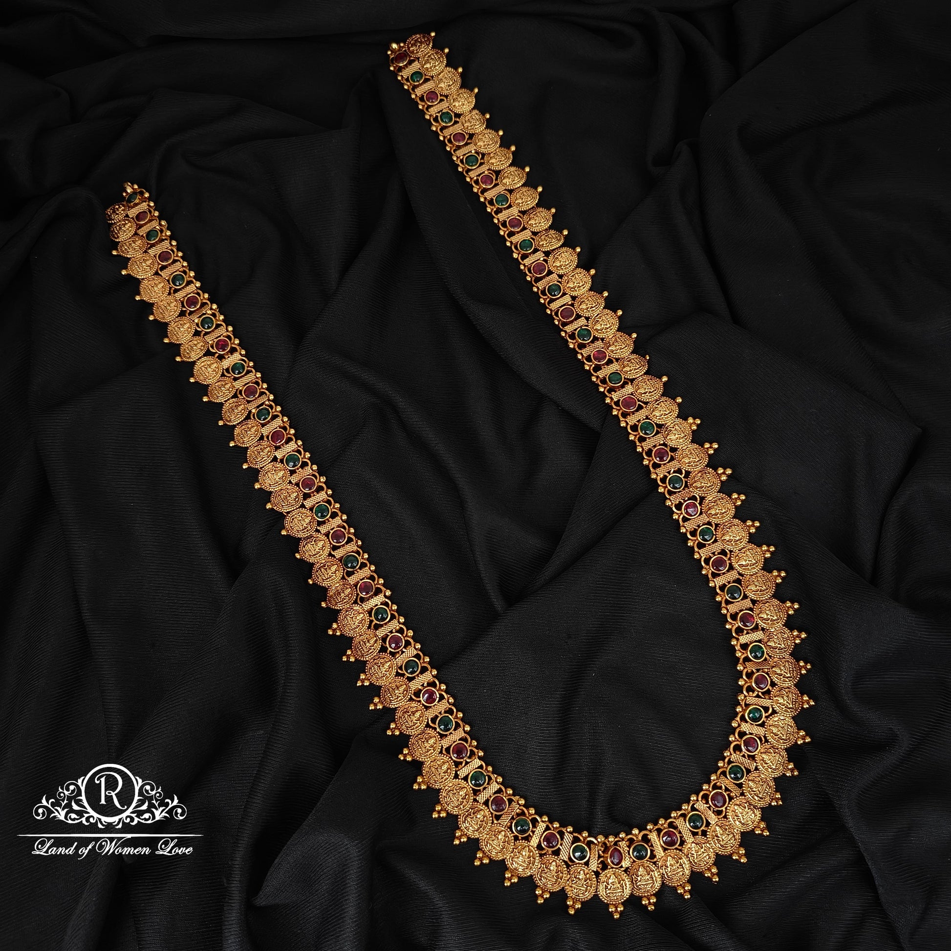 92.5 silver with gold polish lakshmi devi kasu haram 22 inches length desgin by RamalaCollections