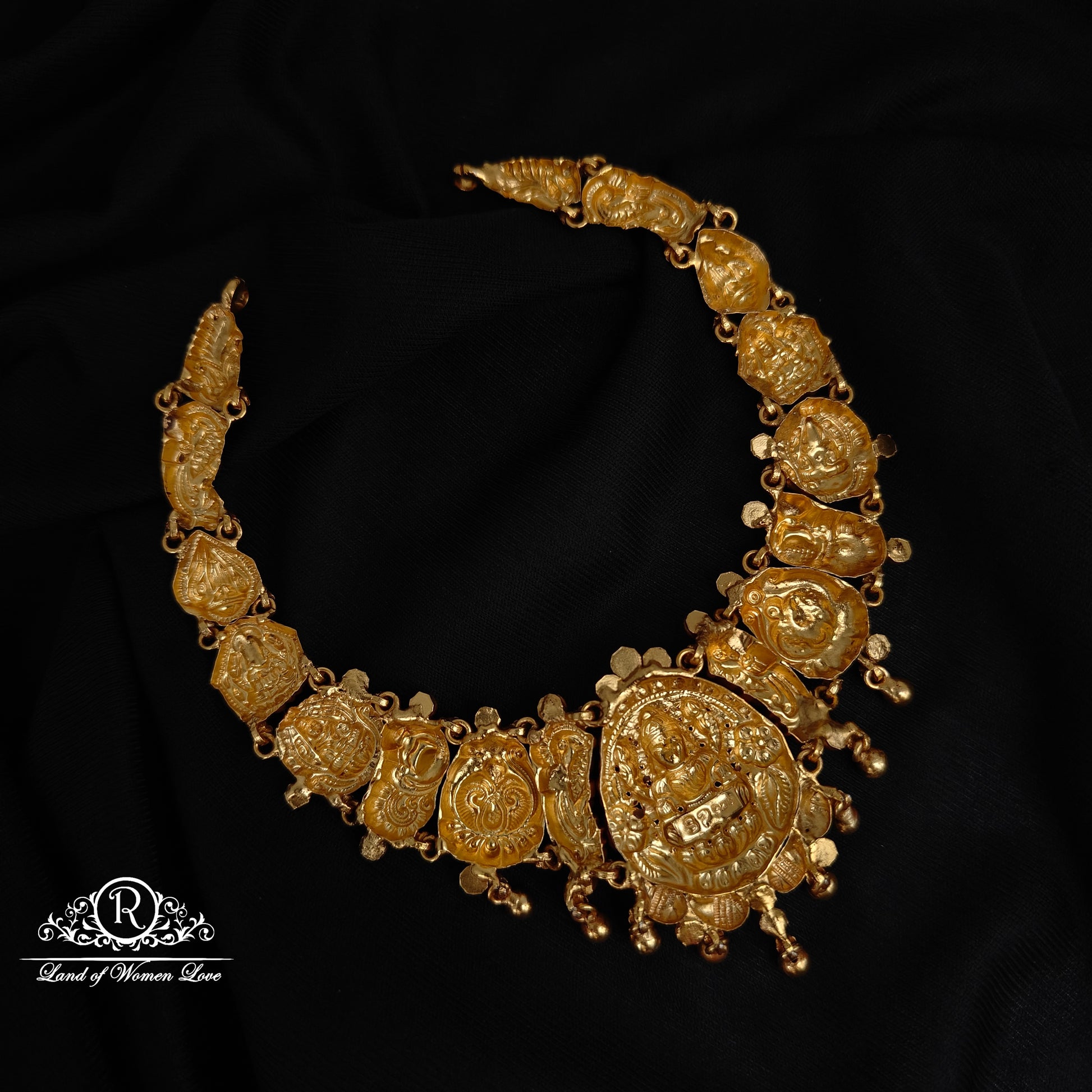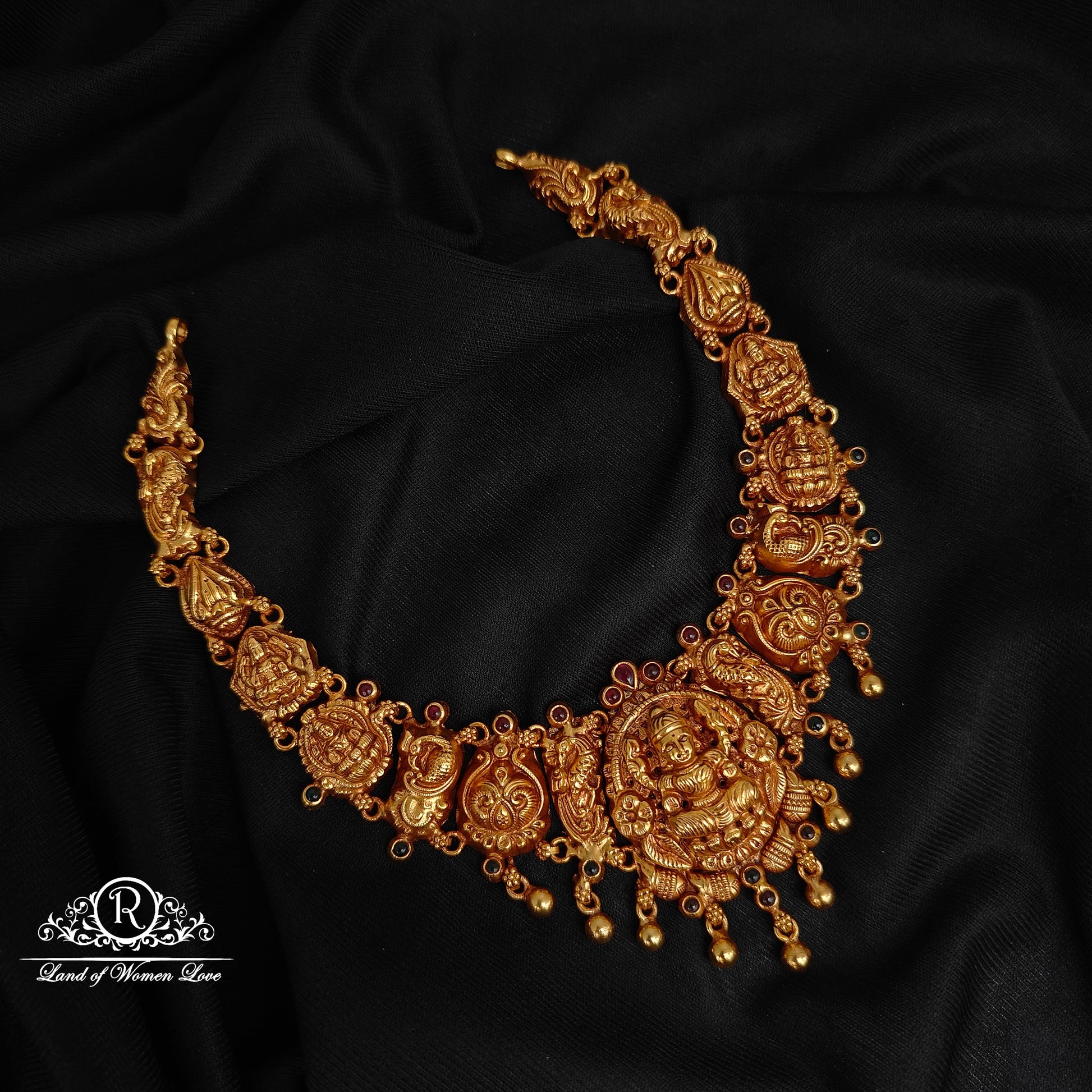 92.5 silver with gold polish lakshmi devi with peacock desgin with goldball drops beautiful necklace 12 inches length desgin by RamalaCollections