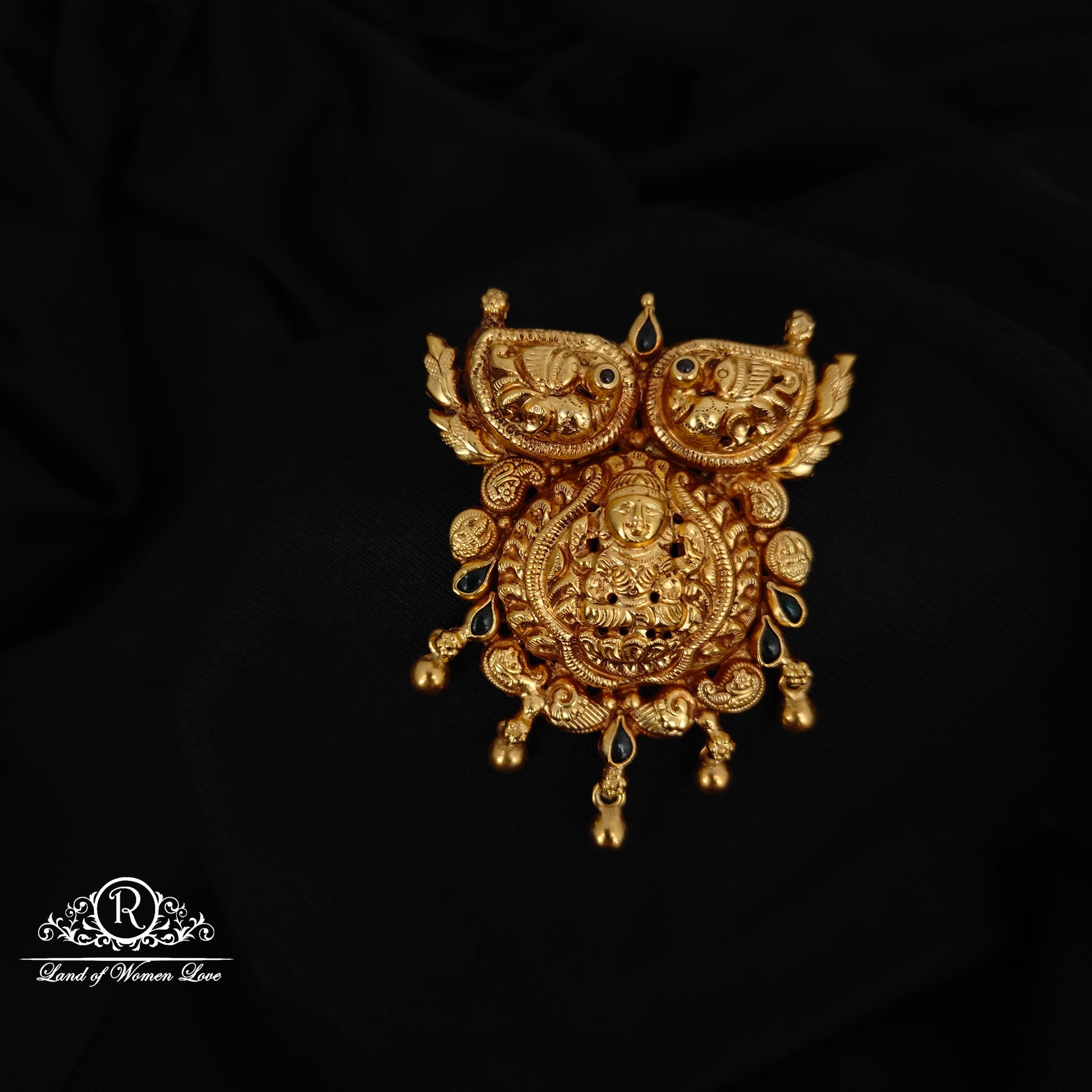 92.5 silver with gold polish lakshmi devi desgin gold ball drops back openable hook with 2 sides rings 2 inches length desgin by RamalaCollections