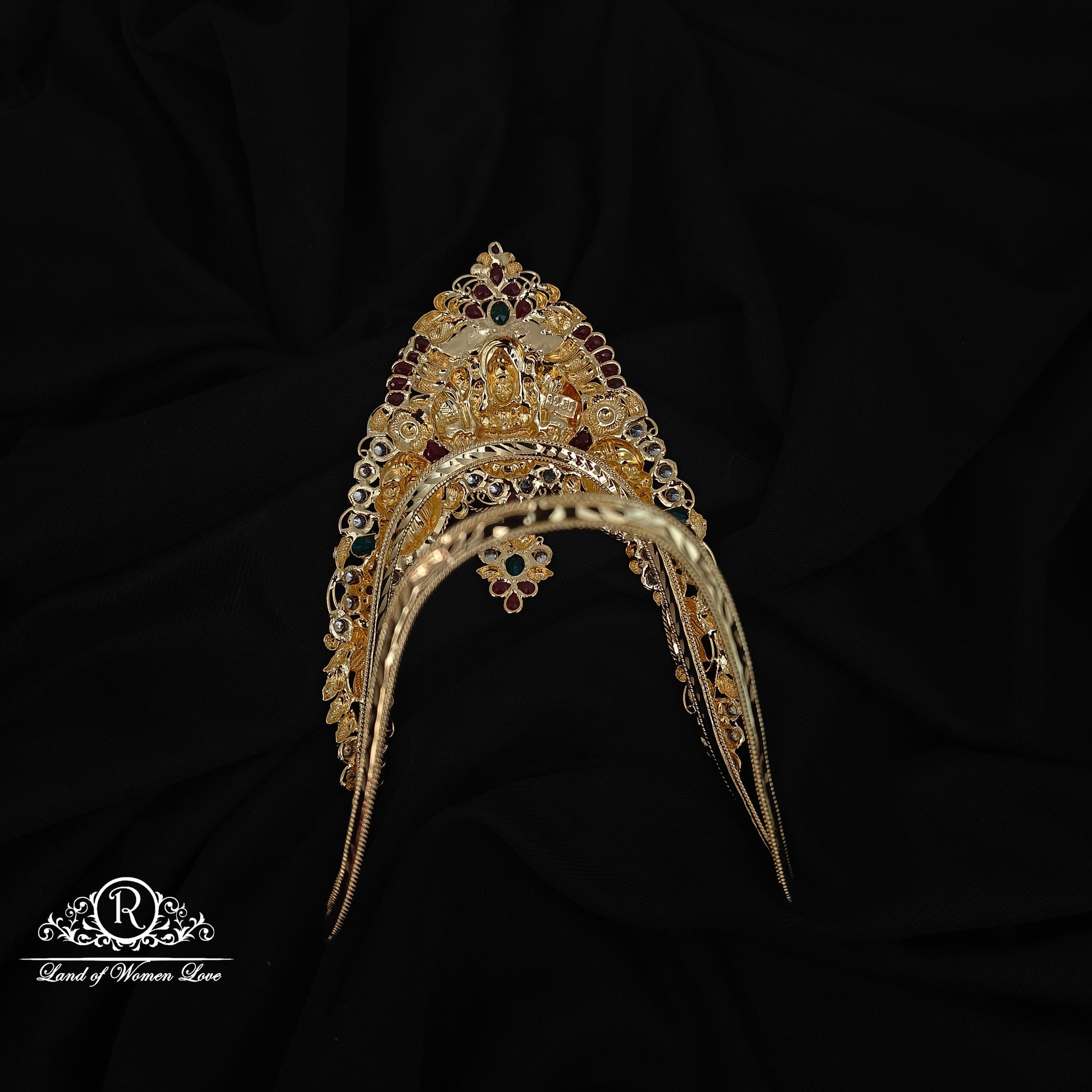 92.5 Silver with gold polish lakshmi devi with peacock desgin vanki 5 inches length desgin by RAMALA COLLECTIONS