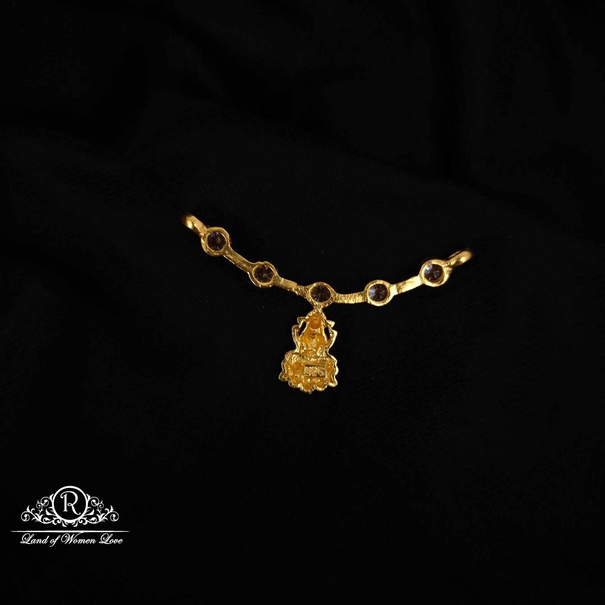 92.5 silver with gold polish light weight mala locket lakshmi devi with white stone combination 0.8 incjhes length desgin by ramala collection