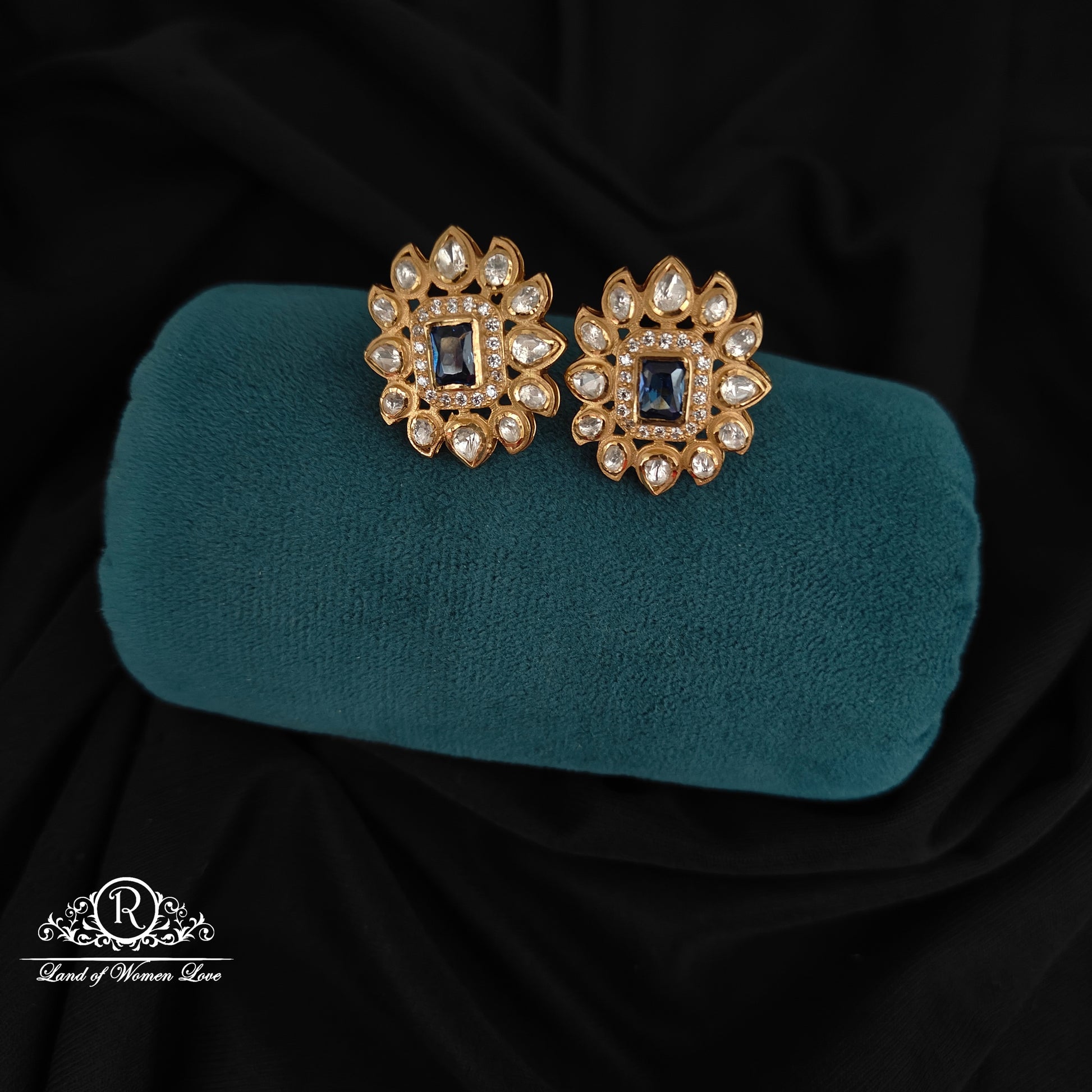 92.5 silver with gold polish mossinate earrings white with blue combinate beautiful desgin 1 inches length desgin by ramala collectins