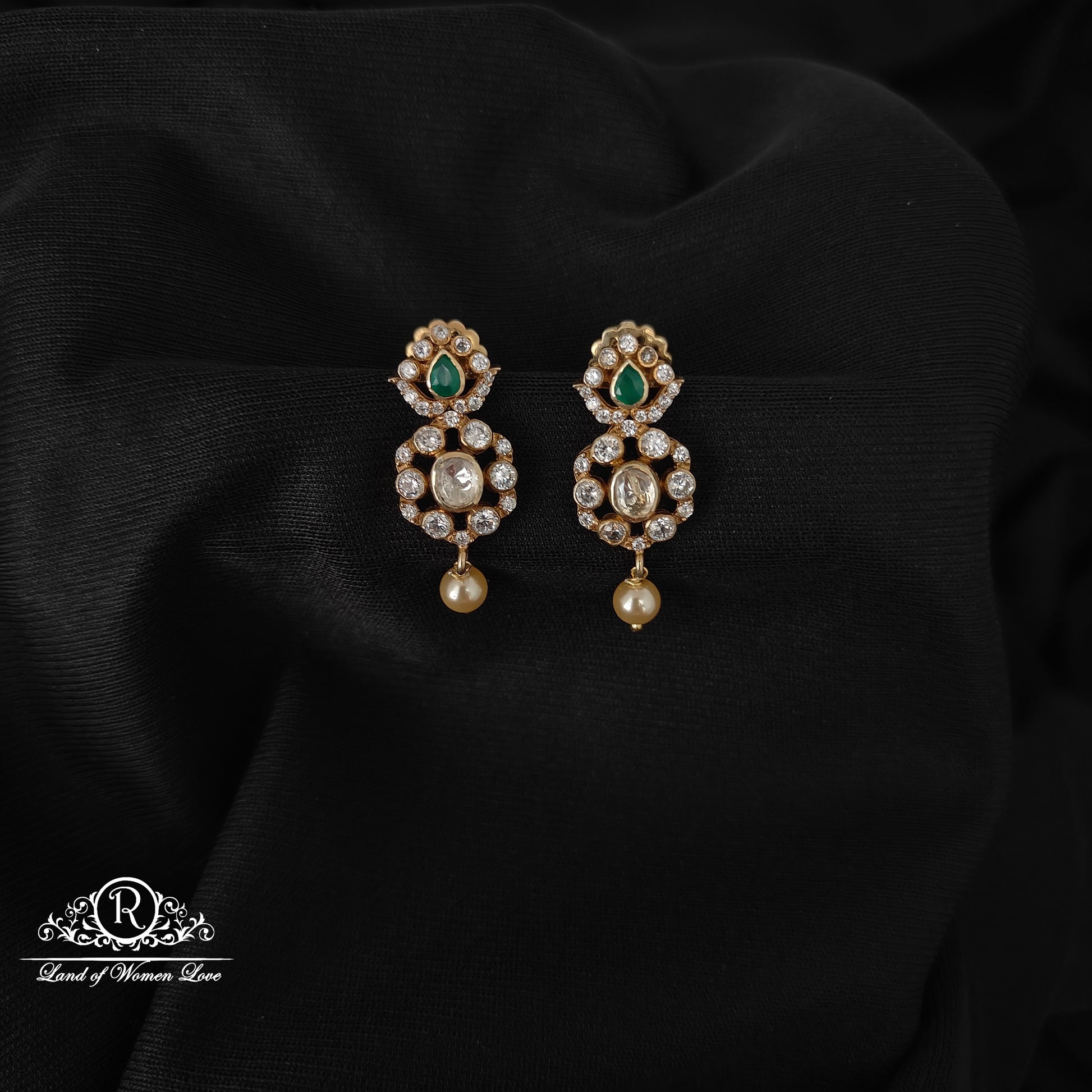 92.5 silver with gold polish moissanite earrings 1 inches length desgin by RamalaCollections