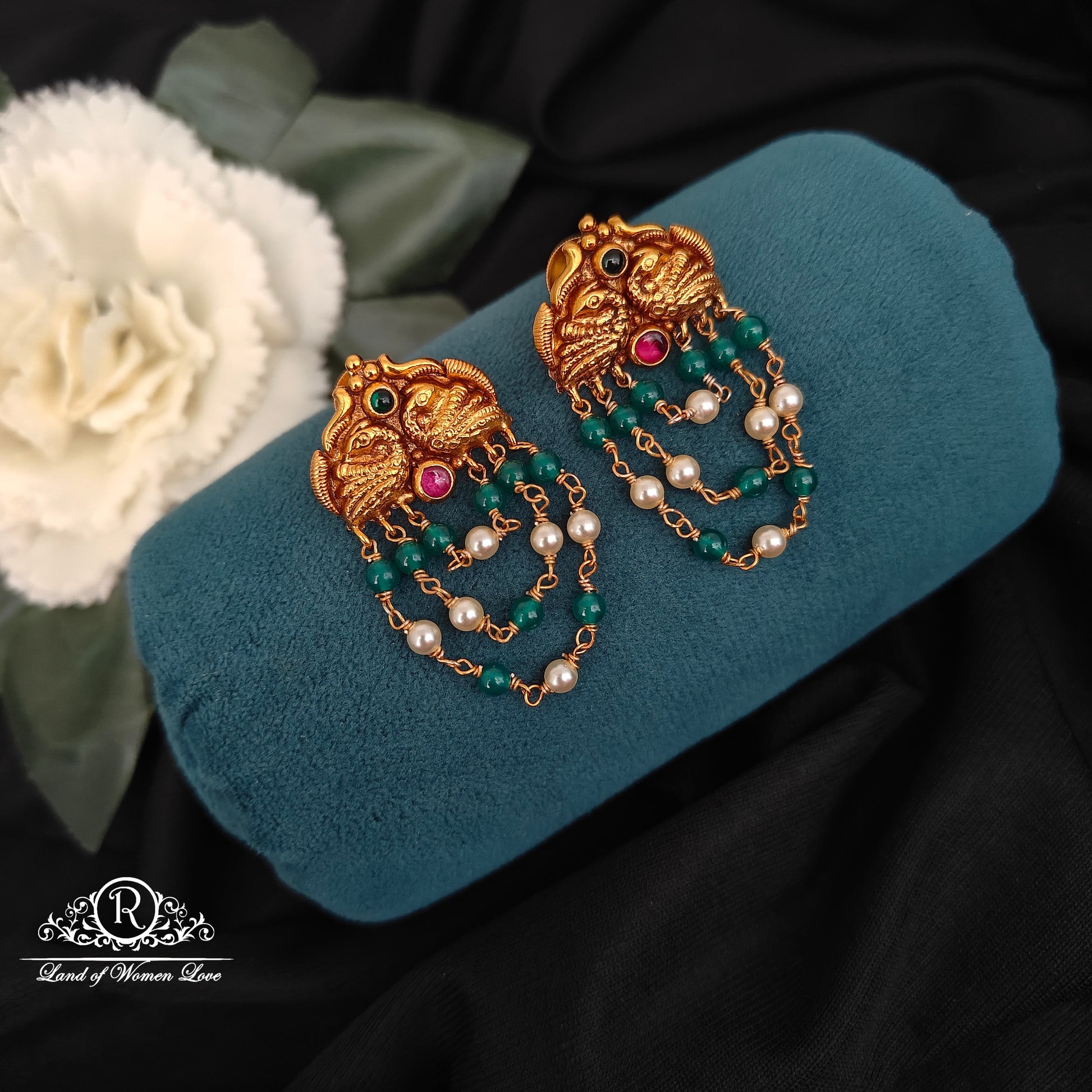 92.5 silver with gold polish peacock desgin earrings south screw pattern 3 step lines beads 1.5 inches length desgin by RamalaCollections