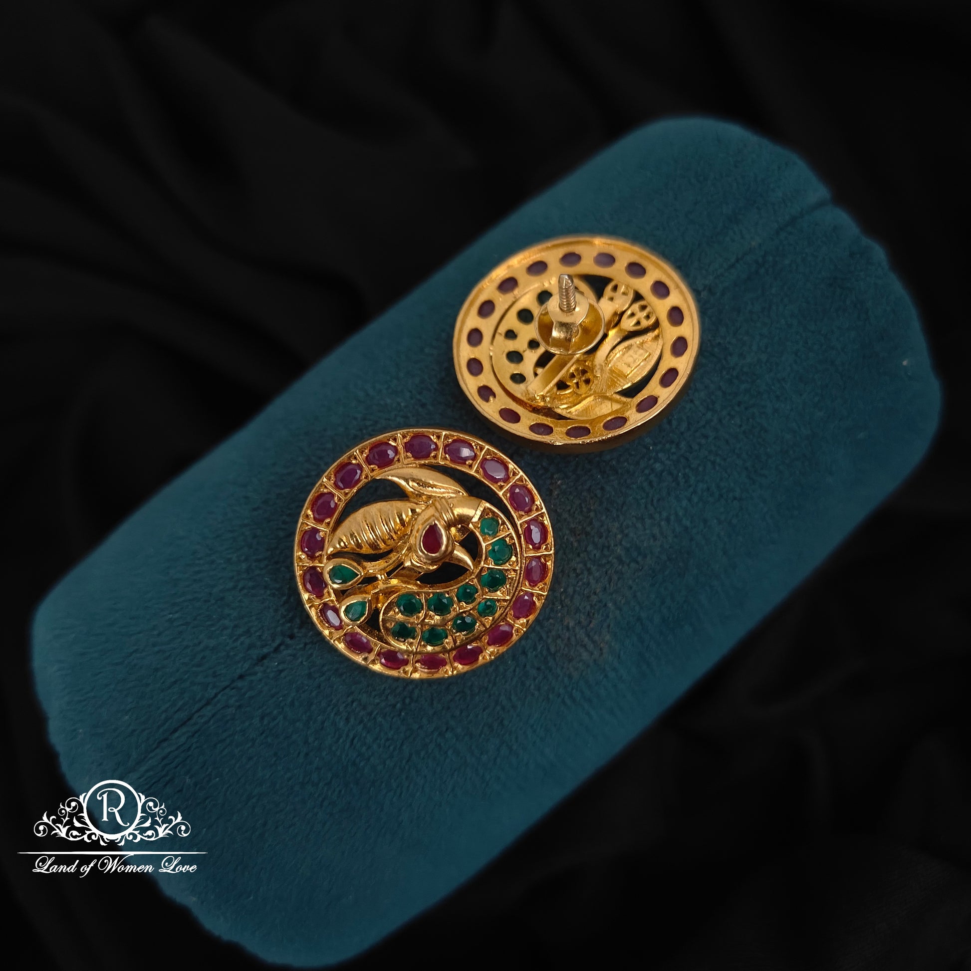92.5 silver peacock earrings with ruby and green stones earrings 1"