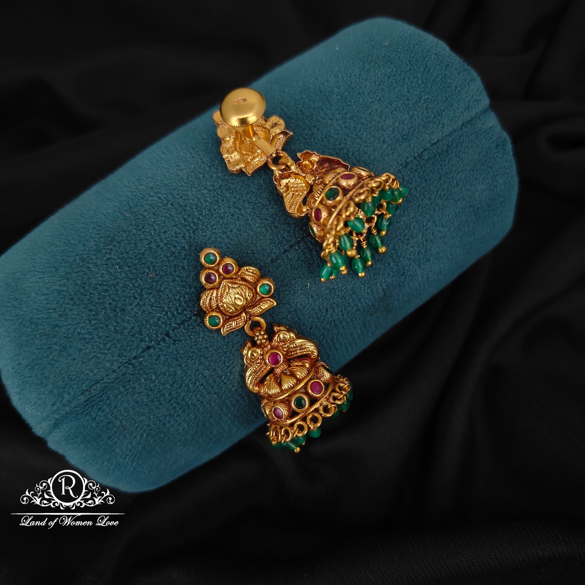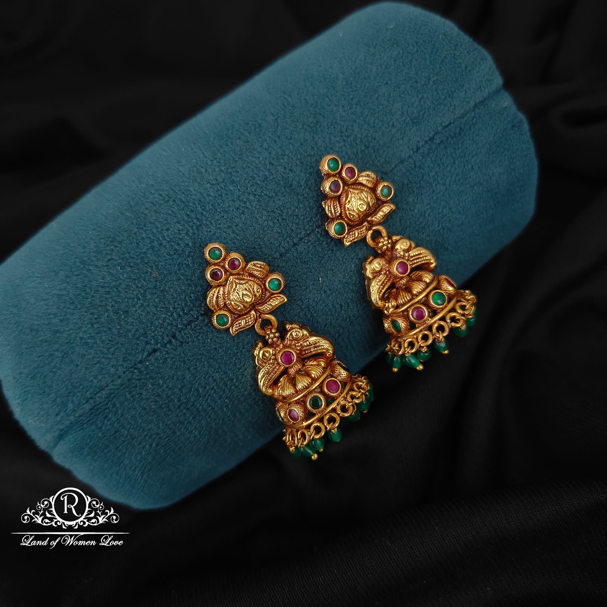 92.5 silver gold and nakshi polish peacock desgin jumkas beautiful desgin 1.5 inches length south screw pattern desgin by ramala collectins