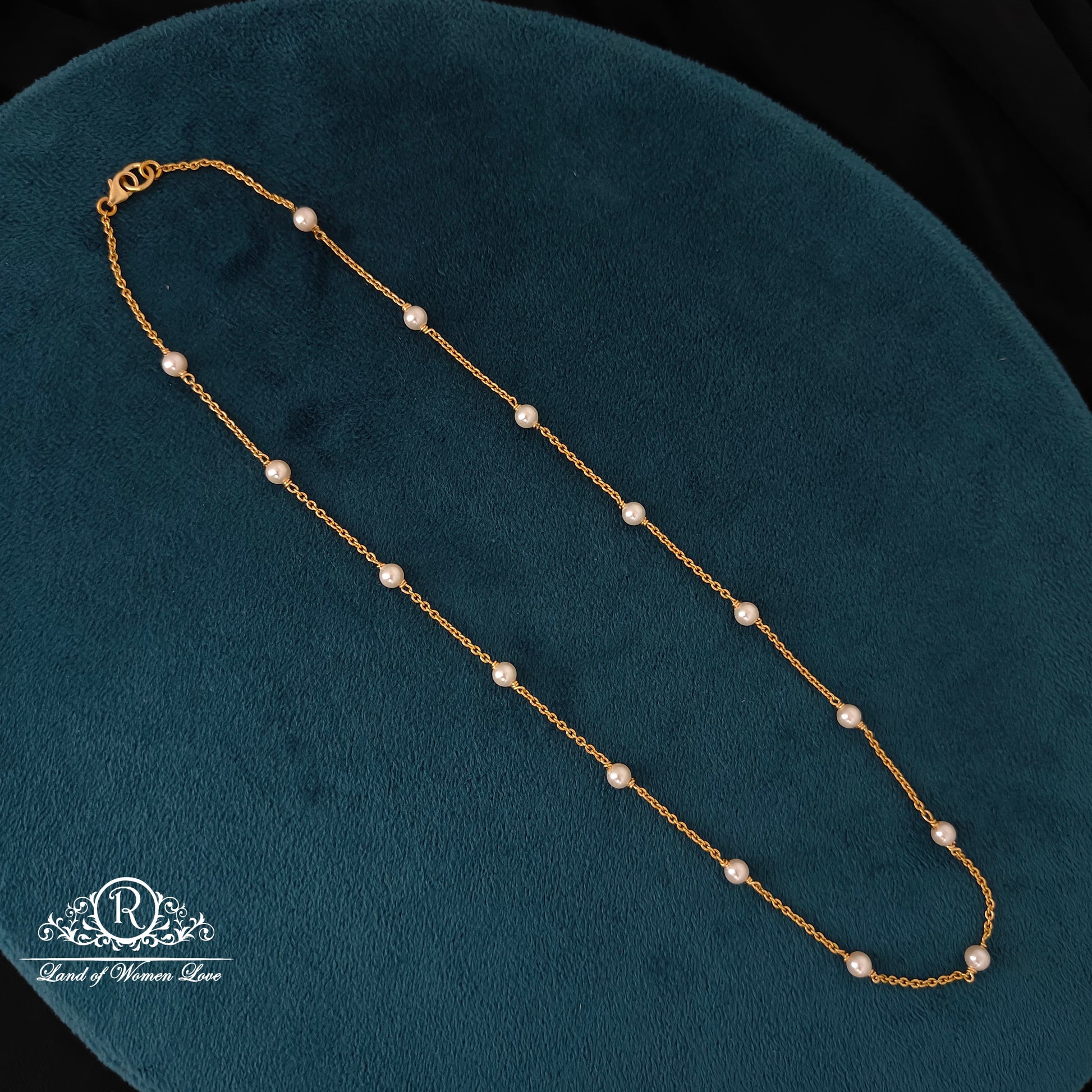 92.5 silver with gold polish pearls chain 17 inches length desgin by RamalaCollections
