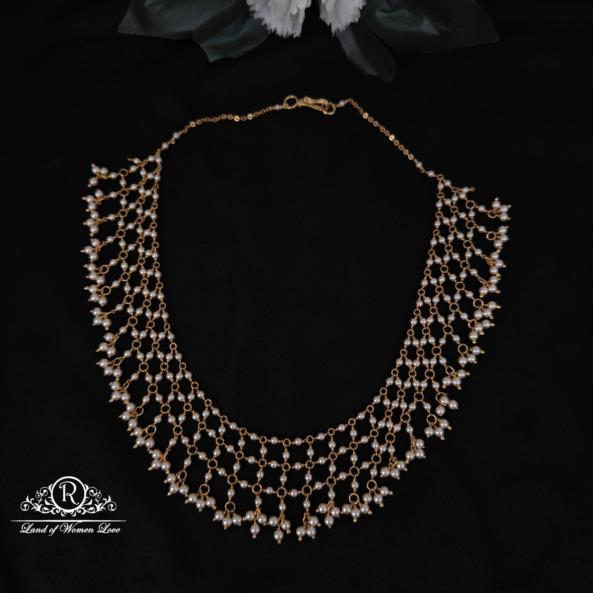 92.5 silver with gold polish pearl jali necklace 18 inches length desgin by RamalaCollections