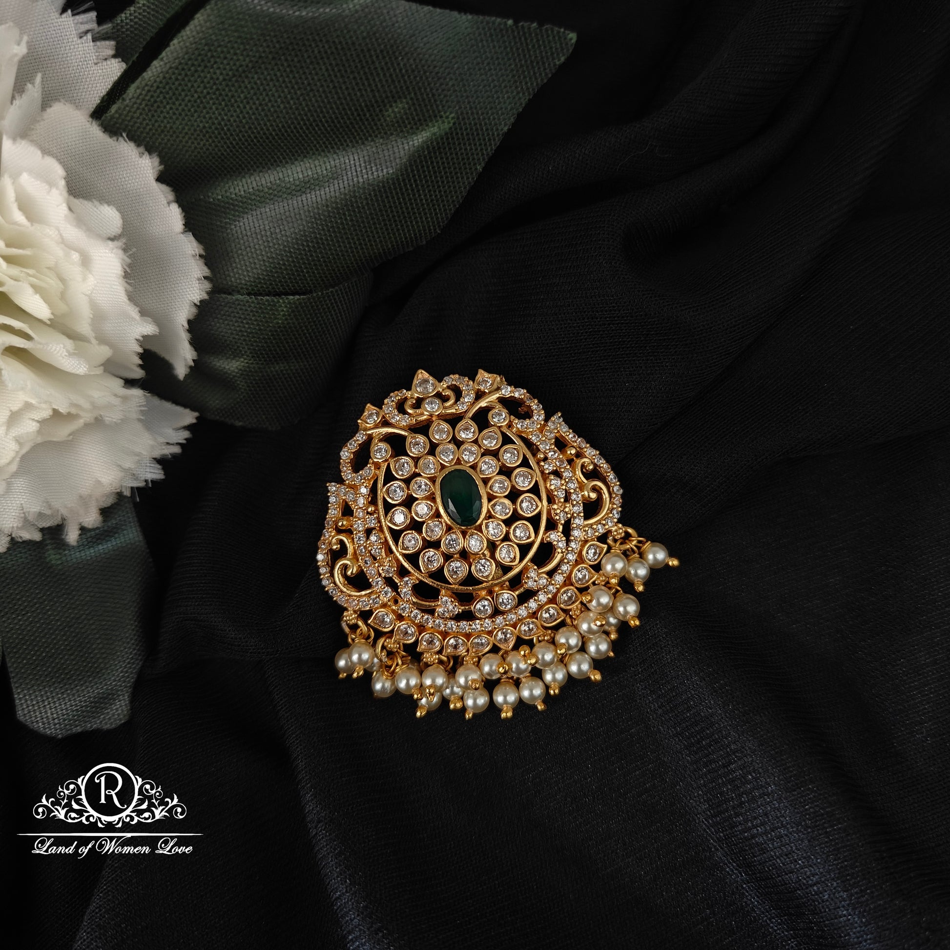 92.5 silver with gold polish cz stones pendant 1.5 inches length desgin by RamalaCollections
