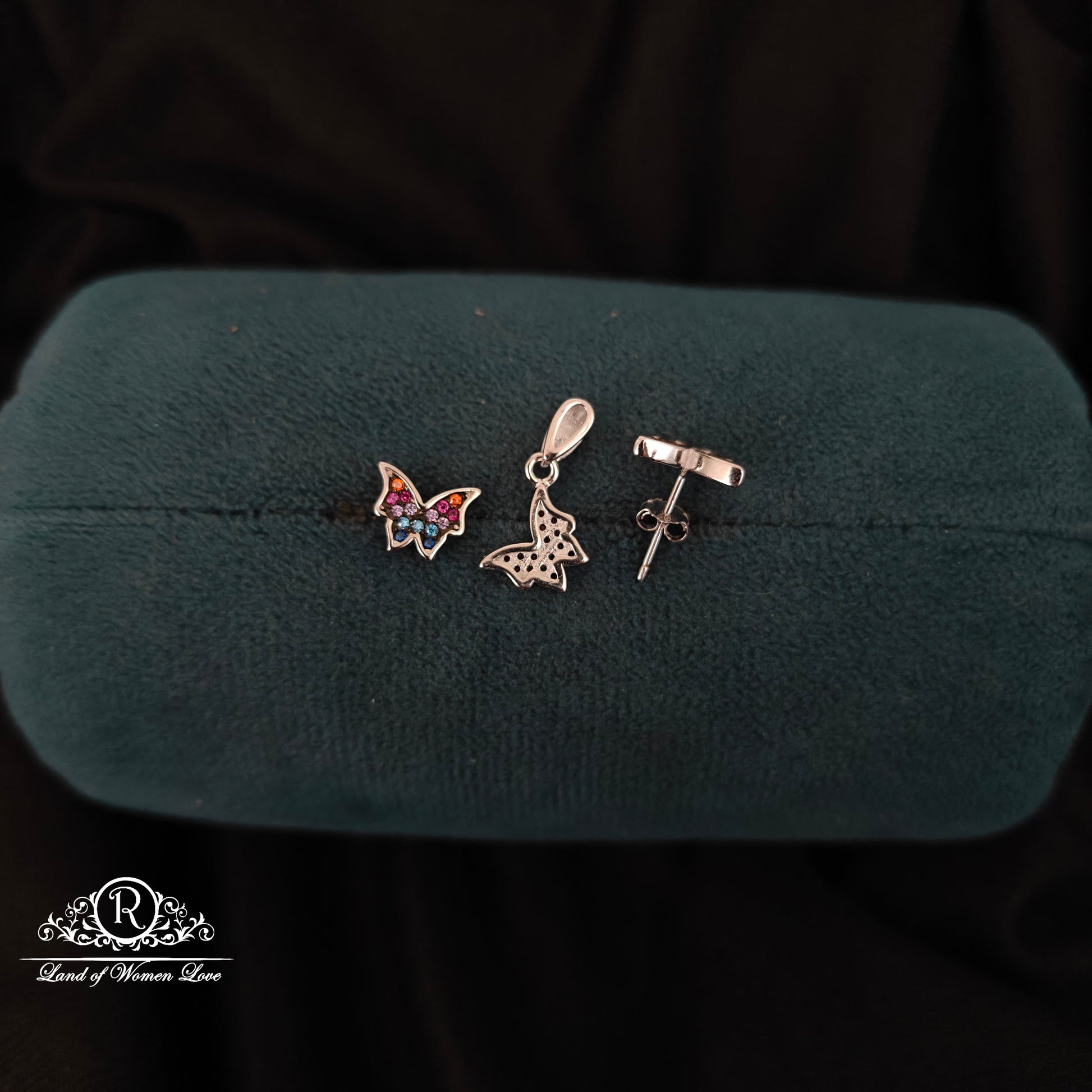 92.5 silver rose gold butterfly earrings with pendant set screw back model 0.6 incheslocket and 0.4 inches earrings length desgin by ramalacollections