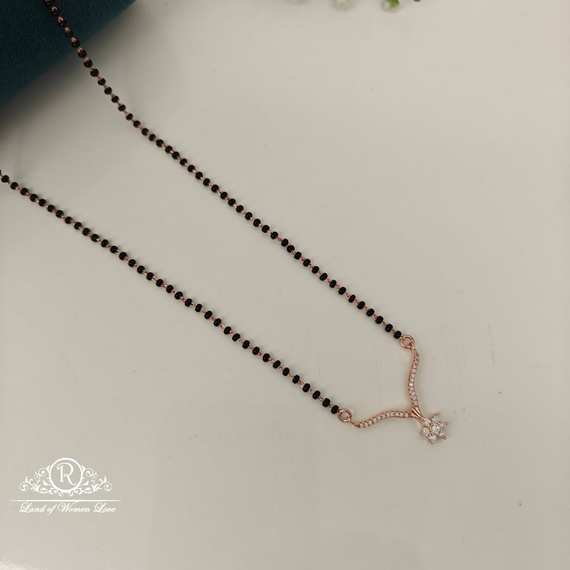 92.5 Silver with rose gold polish black beads chain with beautiful white stone locket 18 inches length desgin by ramalacollections