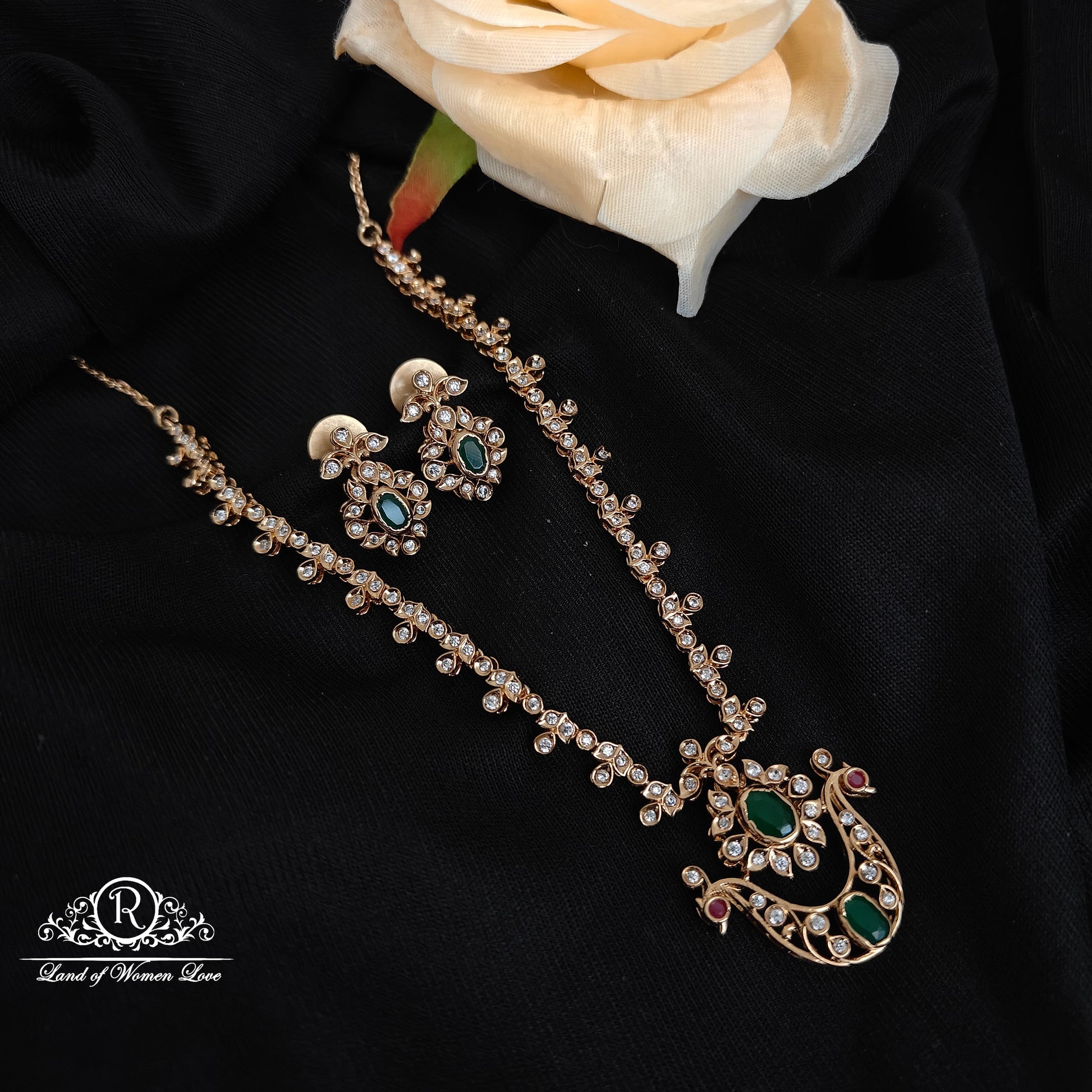 92.5 silver rose gold polish peacock design necklace with earrings set