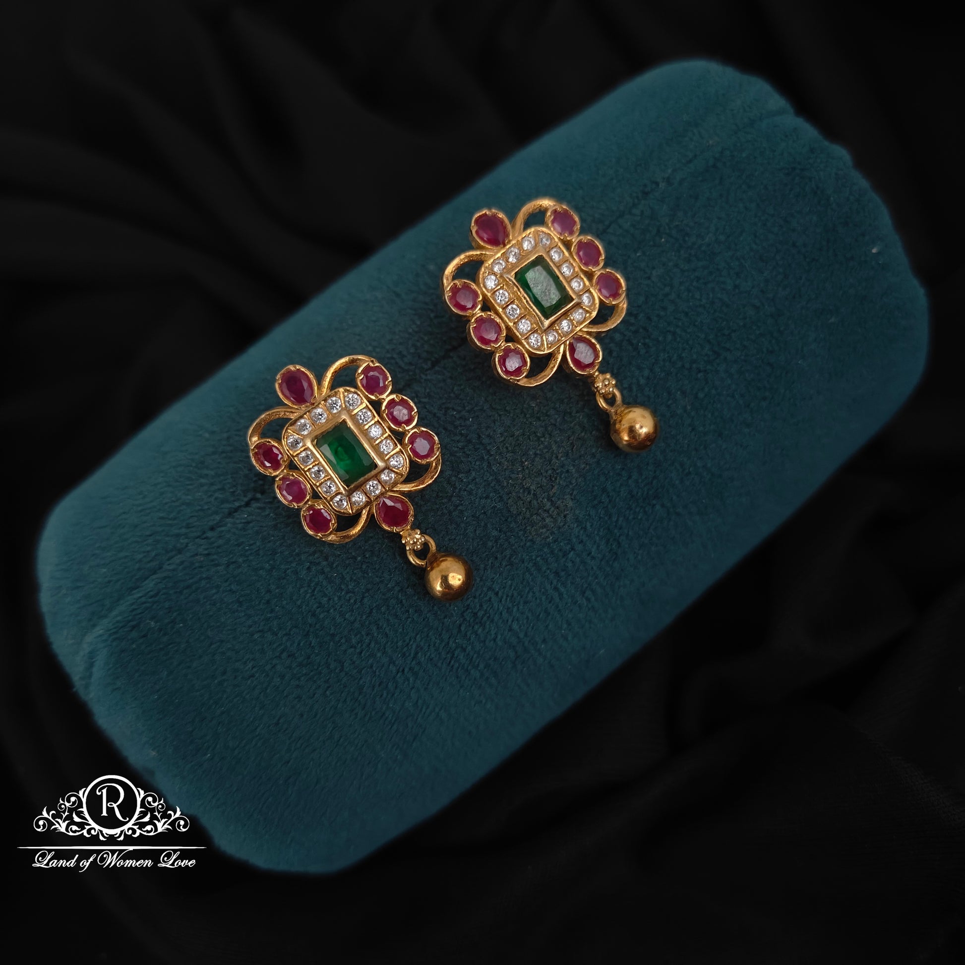 92.5 silver ruby stone earrings with gold ball hangings-RCCP182