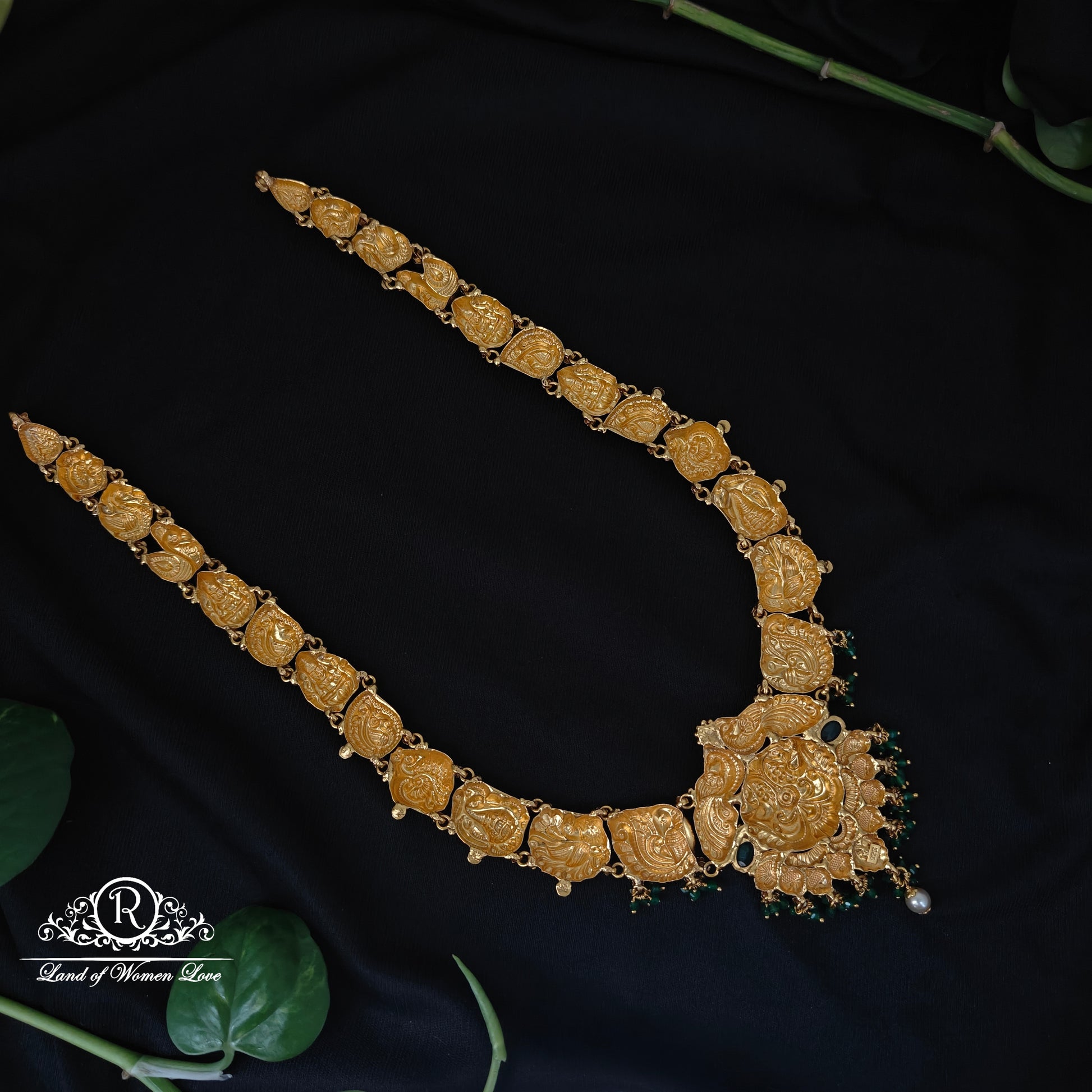92.5 silver simple and Cute Lakshmi Devi and peacock design nakshi haram -22"