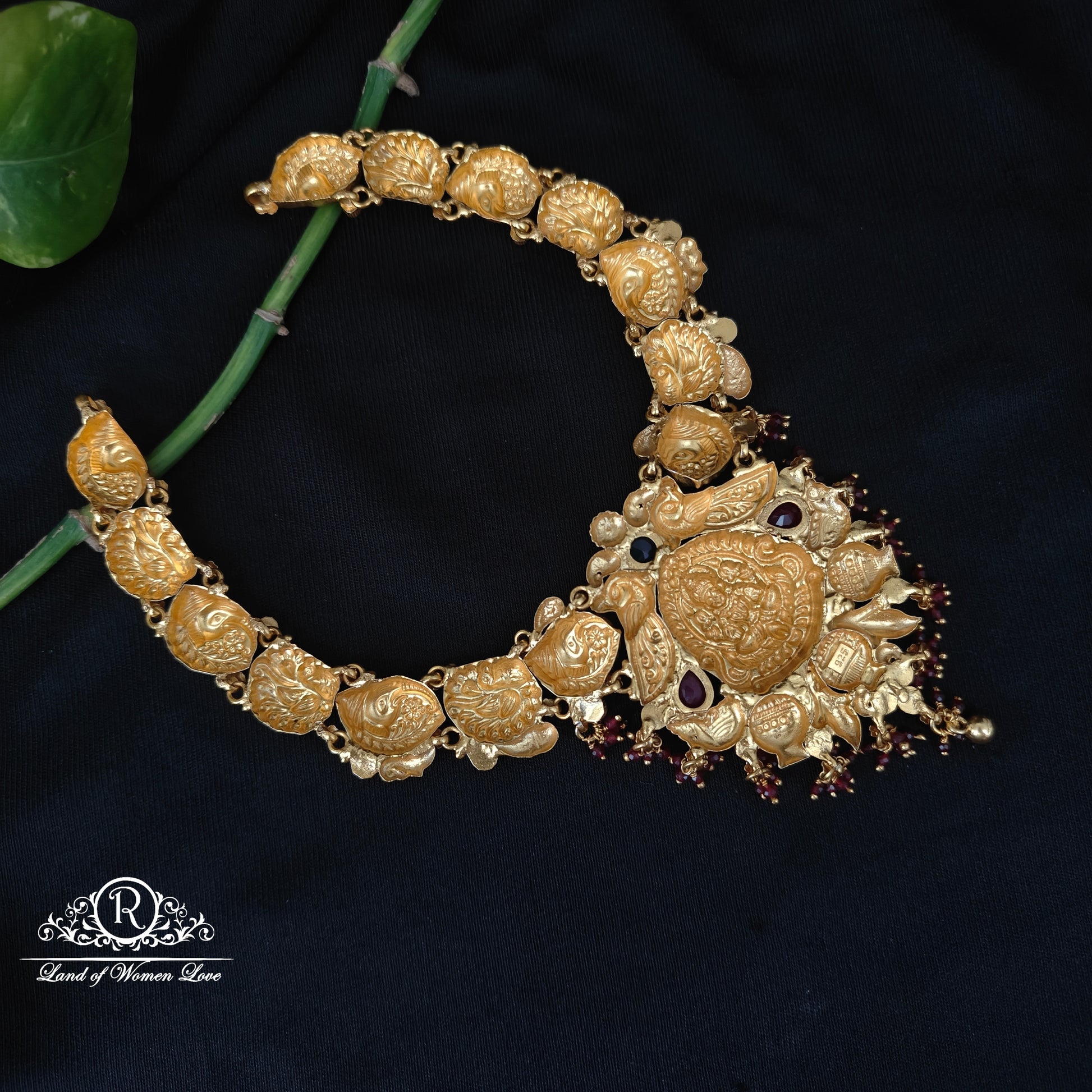 92.5 silver simple and Cute Lakshmi Devi and peacock design nakshi necklace -14"