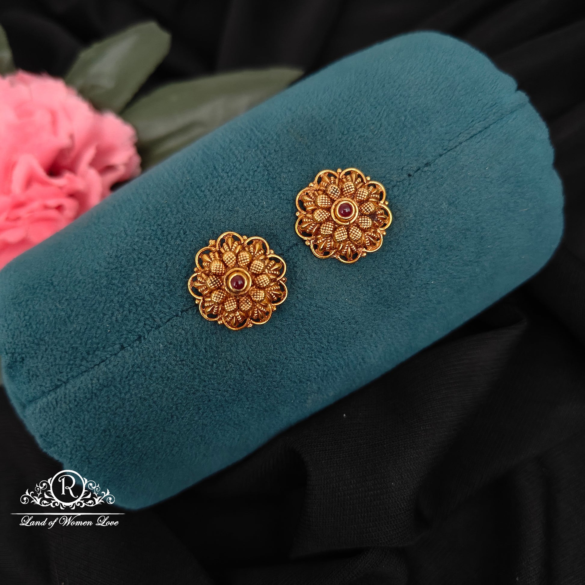 92.5 silver with gold polish stud model earrings south screw pattern 0.4 inches length desgin by RamalaCollections