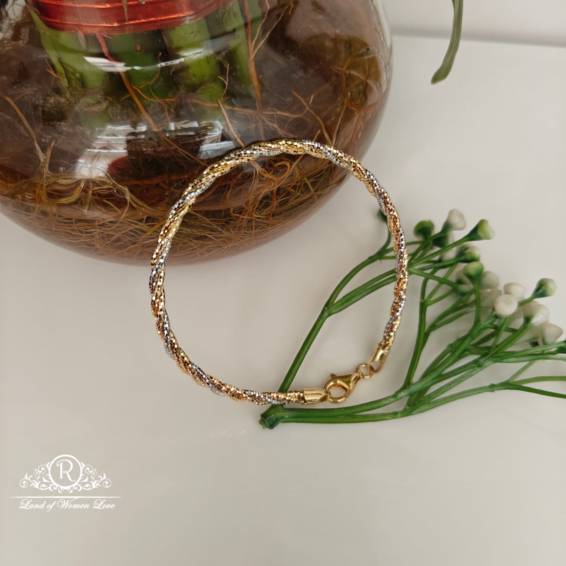 92.5 Silver two tone gold and silver polish bracelet 6 inches length desgin by RAMALA COLLECTIONS