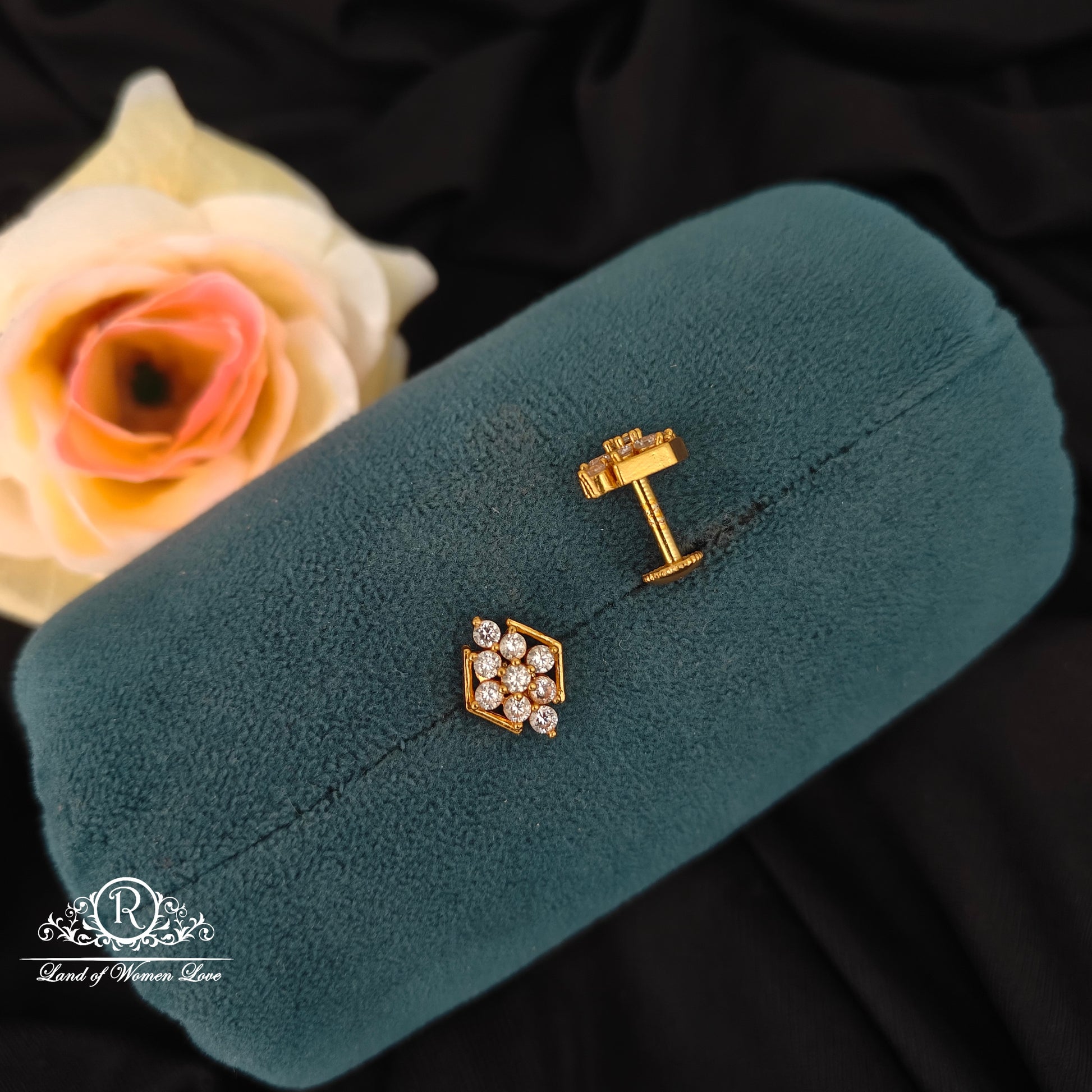 92.5 Silver with gold polish white stone small locket with matching earrings bombayscrew pattern desgin by ramalacollections