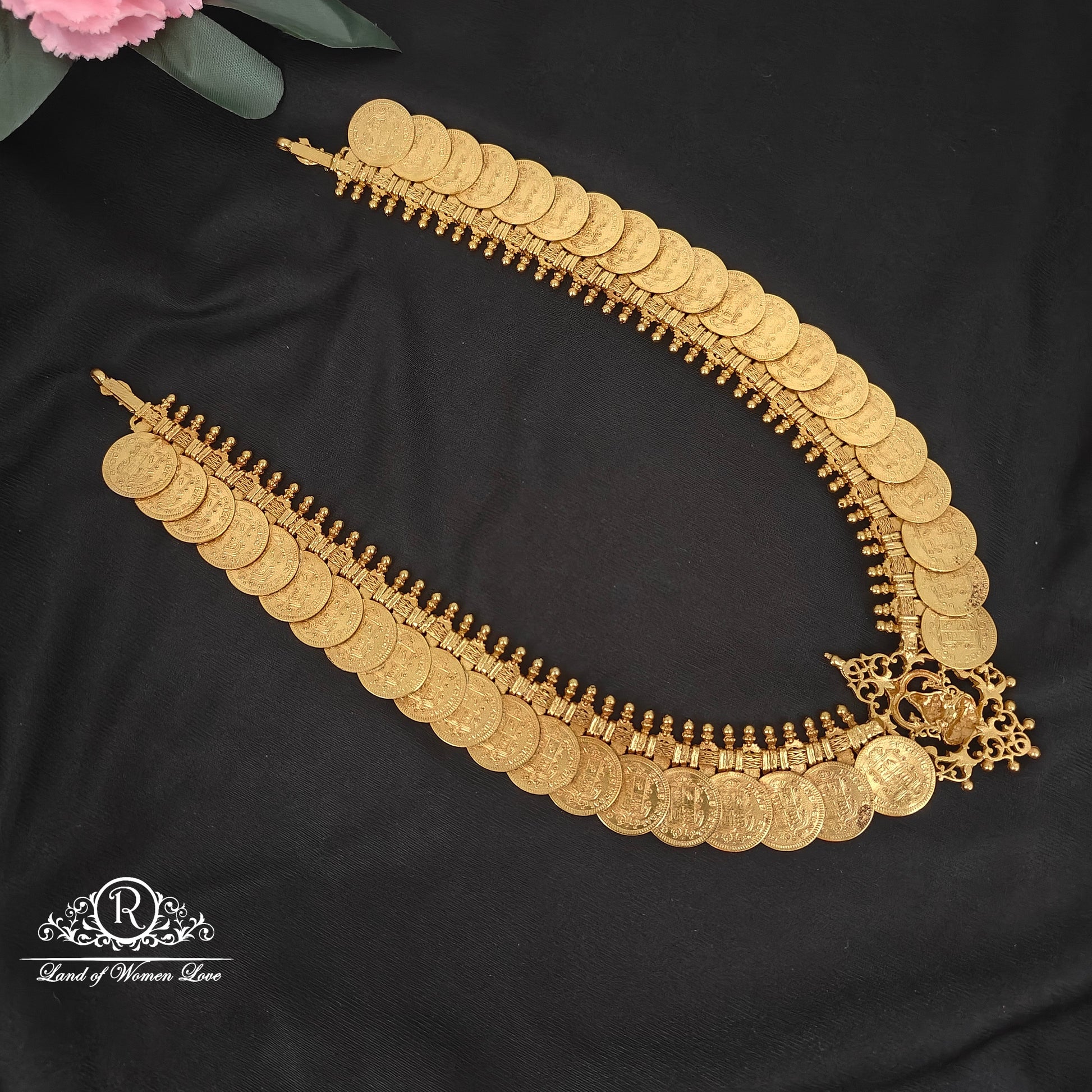 92.5 Silver 22k gold polish Lakshmi Devi kasu Design beautiful Haram 20 inches
