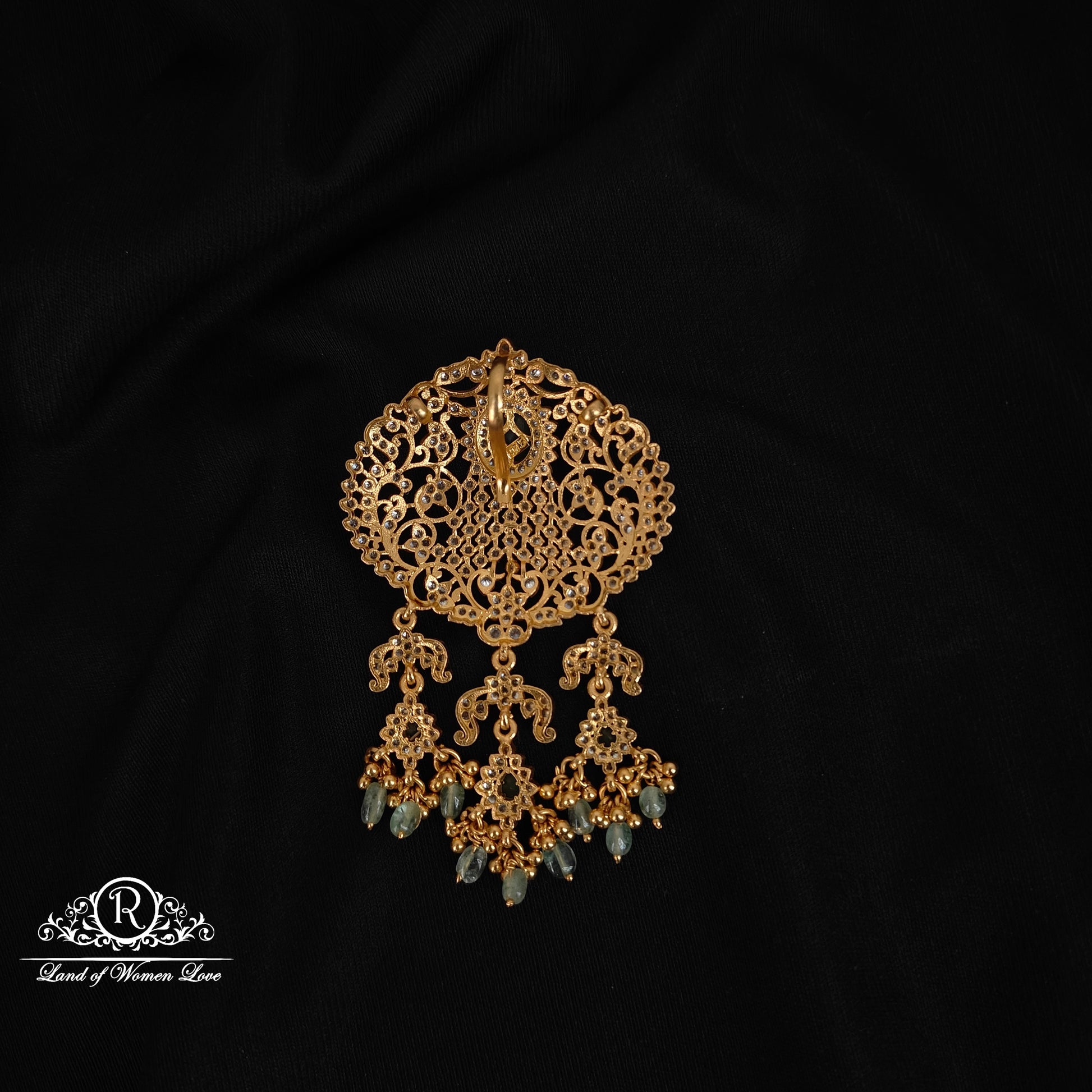 92.5 Silver base 22k gold polish CZ's Beautiful pendant with 3.2 inches length from Ramala collections ✨