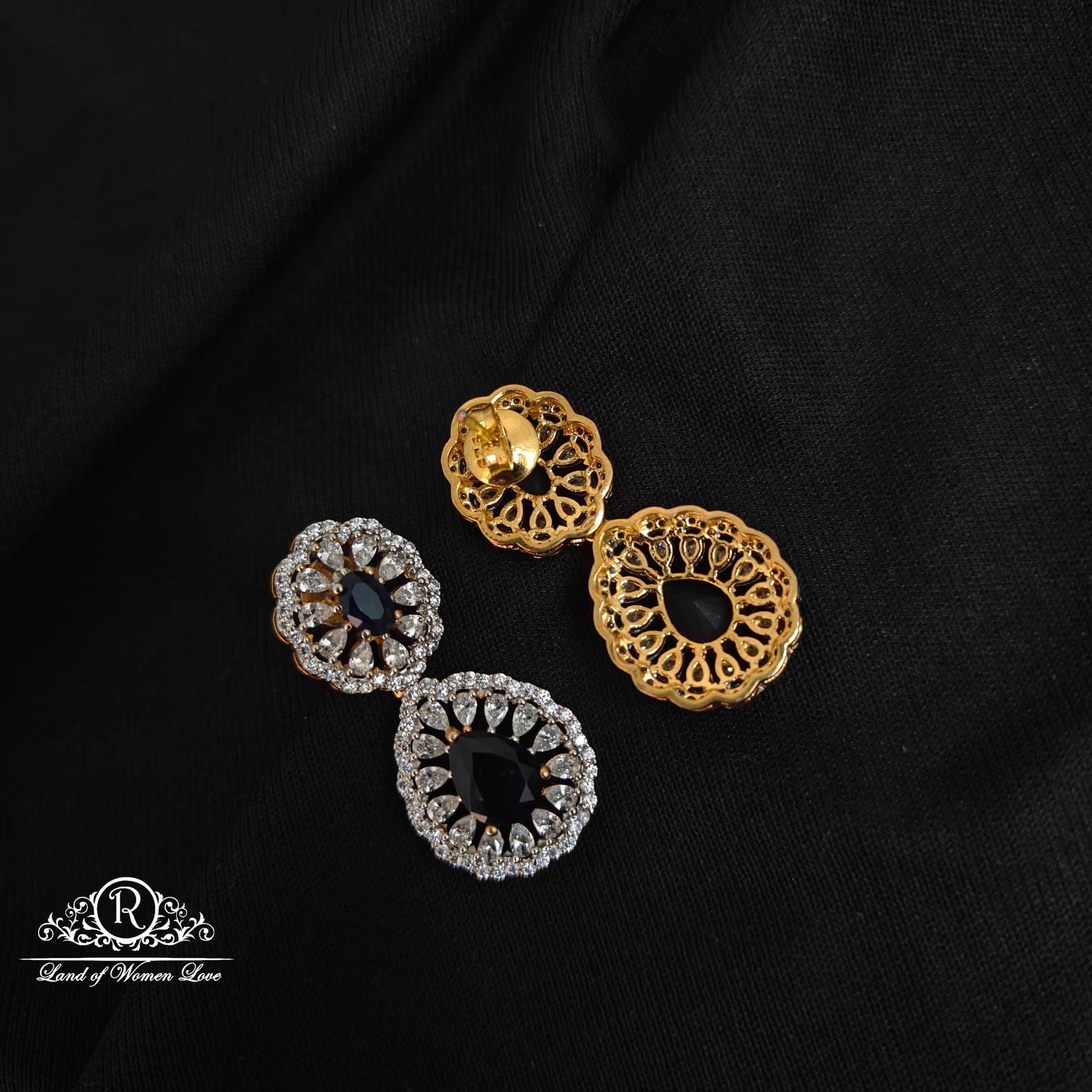 92.5 Silver diamond finishing Black stone necklace set with beautiful earrings from ramala collections✨