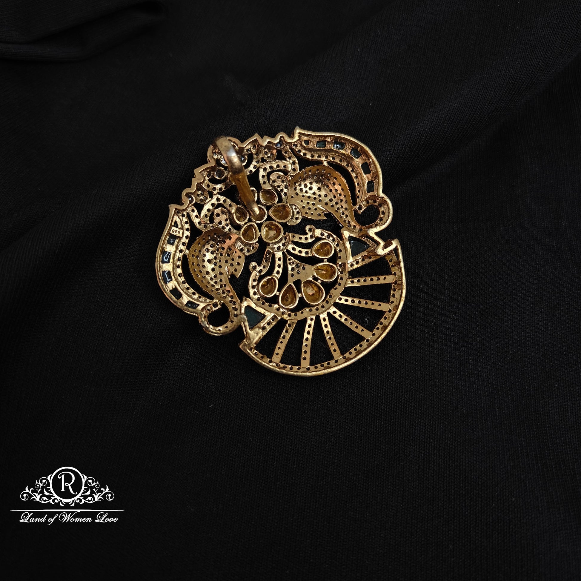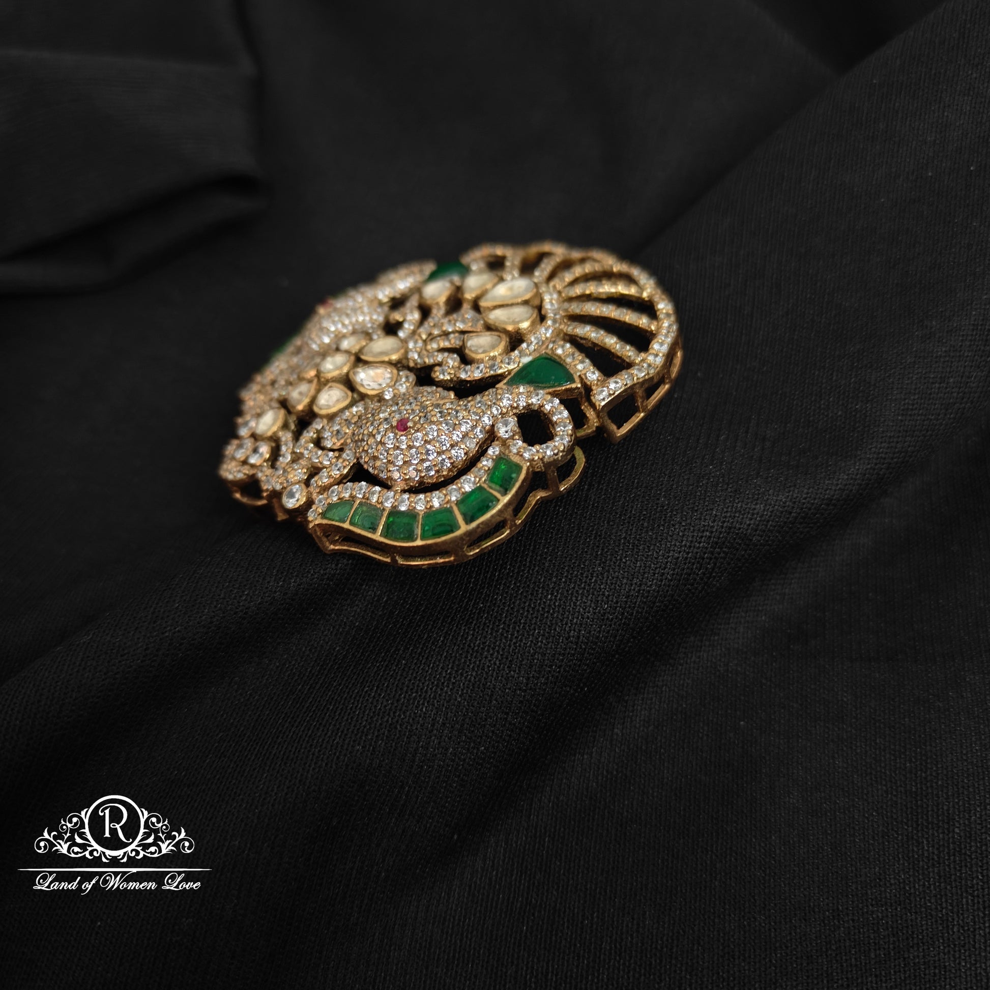 92.5 Silver Victorian elephant design white and green stones side locket with 2 inches length from Ramala collections ✨
