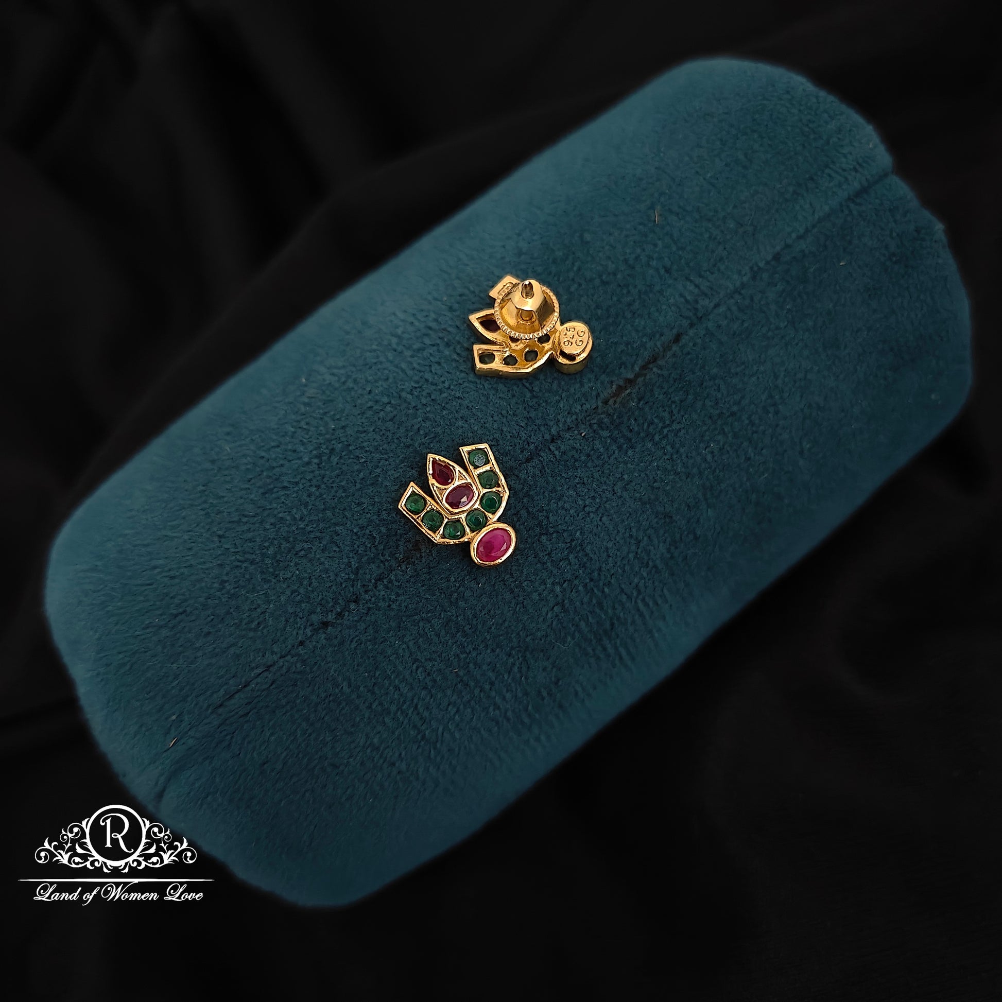 92.5 Silver base 22k gold polish Green and ruby earrings with 0.5 inches length from Ramala collections ✨
