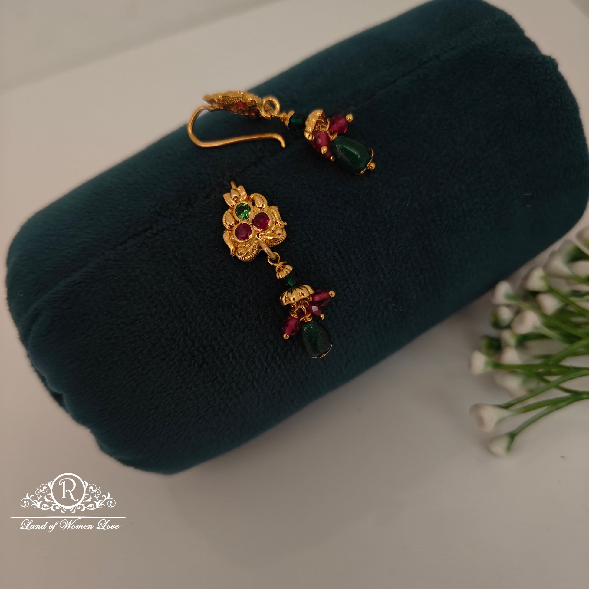 92.5 Silver base 22k gold polish Hangings with coloured beads 1.2 inches length from Ramala collections ✨