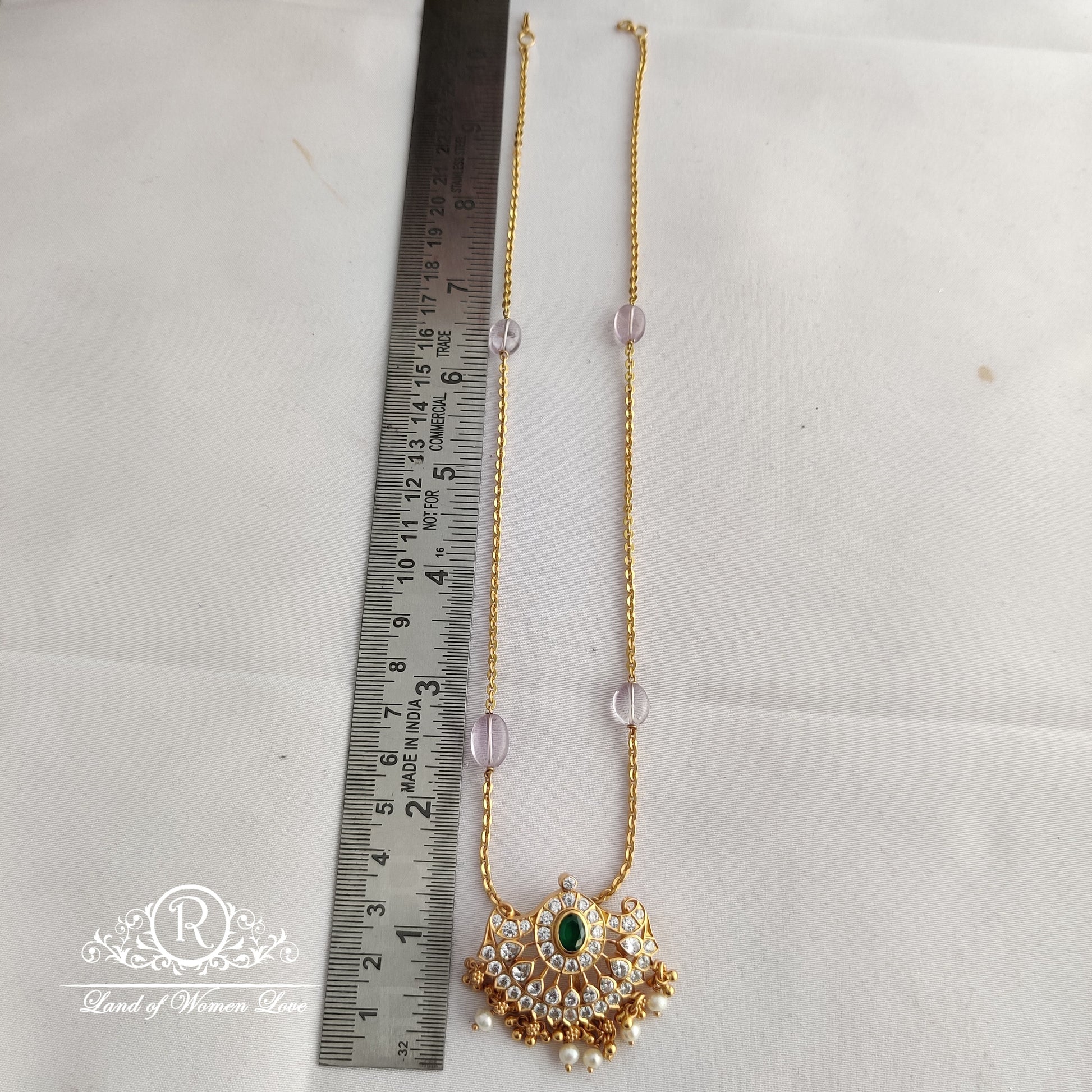 92.5 Silver Jewelry Beautiful Locket Designs With White Stones Middle Green Stone With Back Side Openable Hook With Beautiful Chain Design Middle Beads Model With 22k Gold Coating With 24" Inches.From Ramalacollections