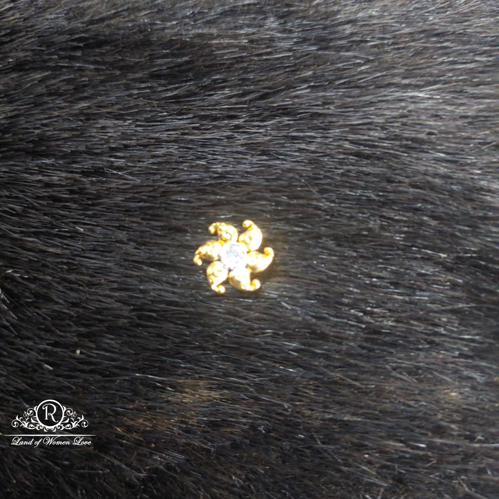Flower shape with single white stone single making locket with 1"inch with 92.5 silver Jewelry with gold polish.Ramala collection