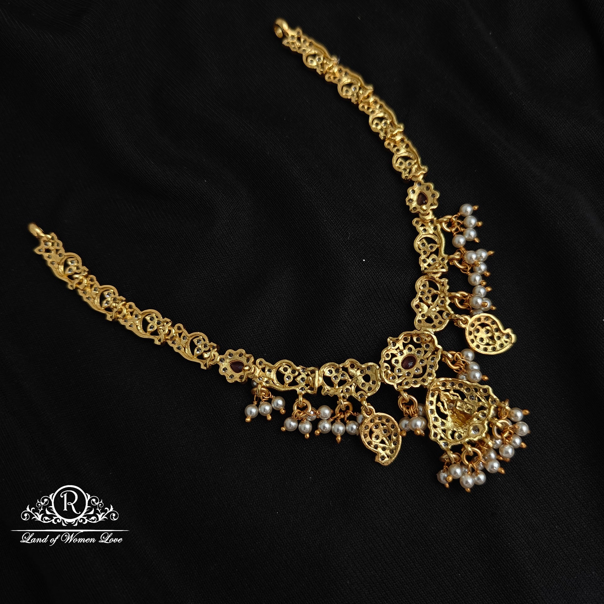 92.5 Silver base 22k gold polish Lakshmi Devi and Mango design pearls necklace with 8 inches length from Ramala collections ✨
