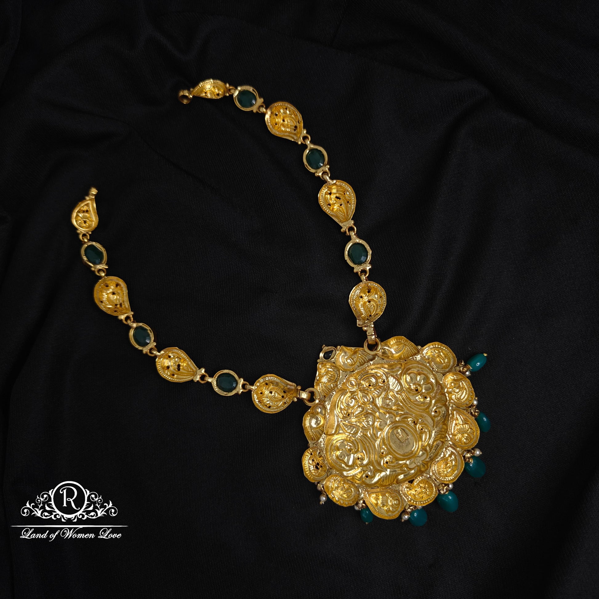 92.5 Silver base 22k gold polish Beautiful Nakshi Mini Haram-RC89-60M08 hanging coloured beads and pearls with 16 inches length from Ramala collections ✨