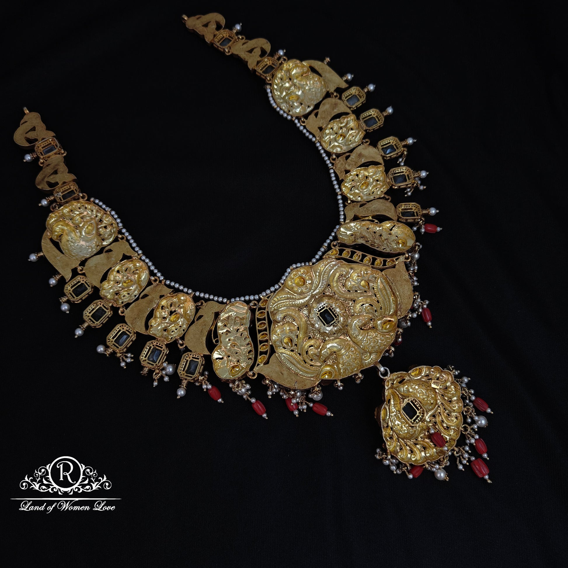 92.5 Silver base 22k gold polish Nakshi peacock design Haram with polki and kundans with24 inches length from Ramala collections ✨