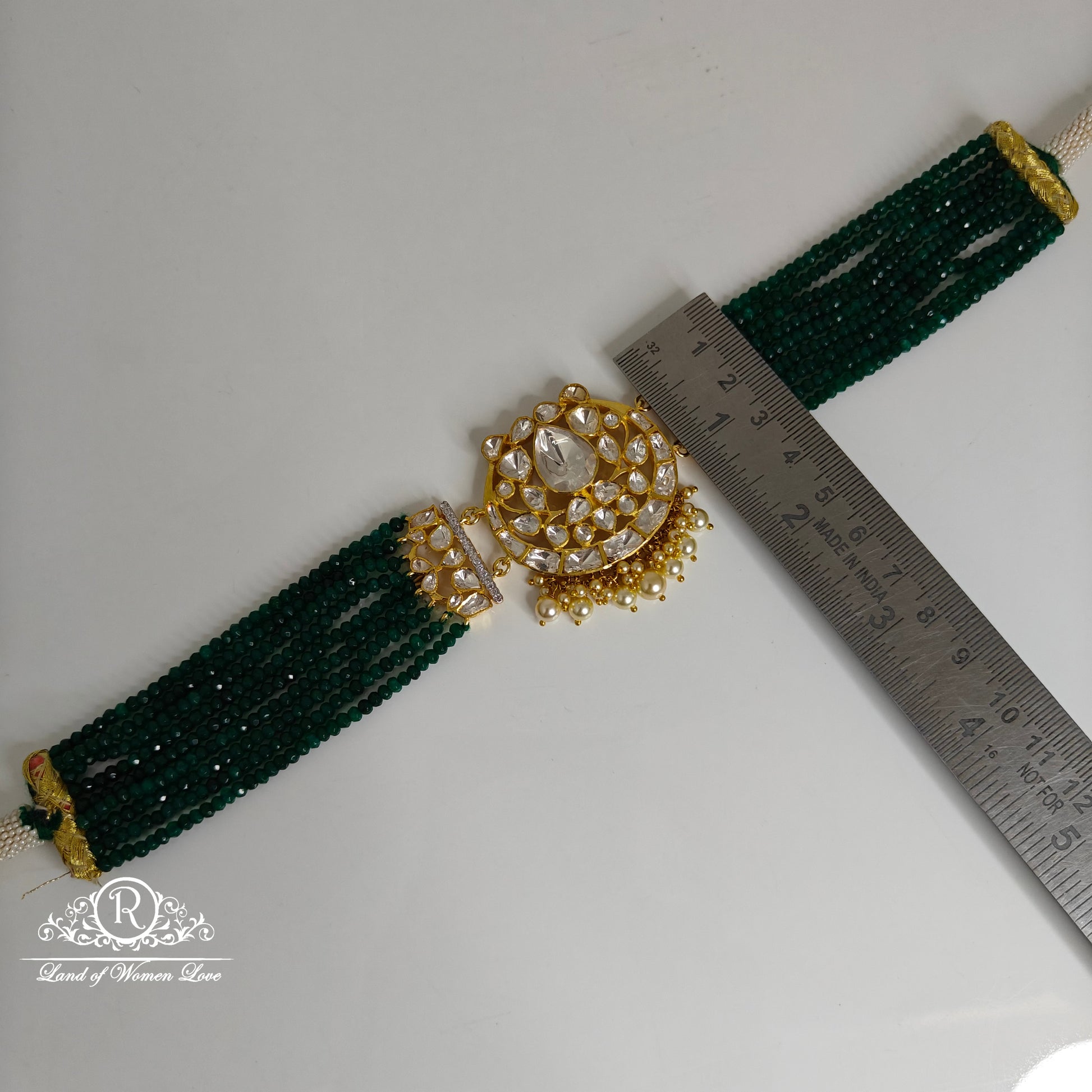 92.5 Silver Polki Green beads Chocker-RCSJ004