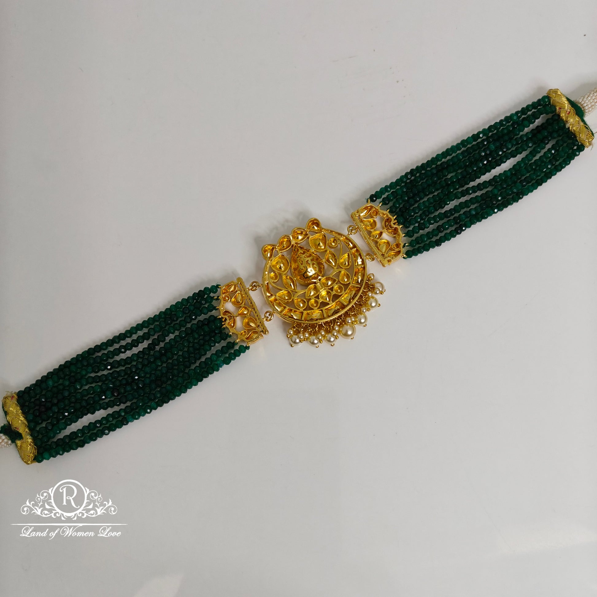 92.5 Silver base 22k gold polish Polki Green beads chocker hanging pearls with 12 inches length from Ramala collections ✨